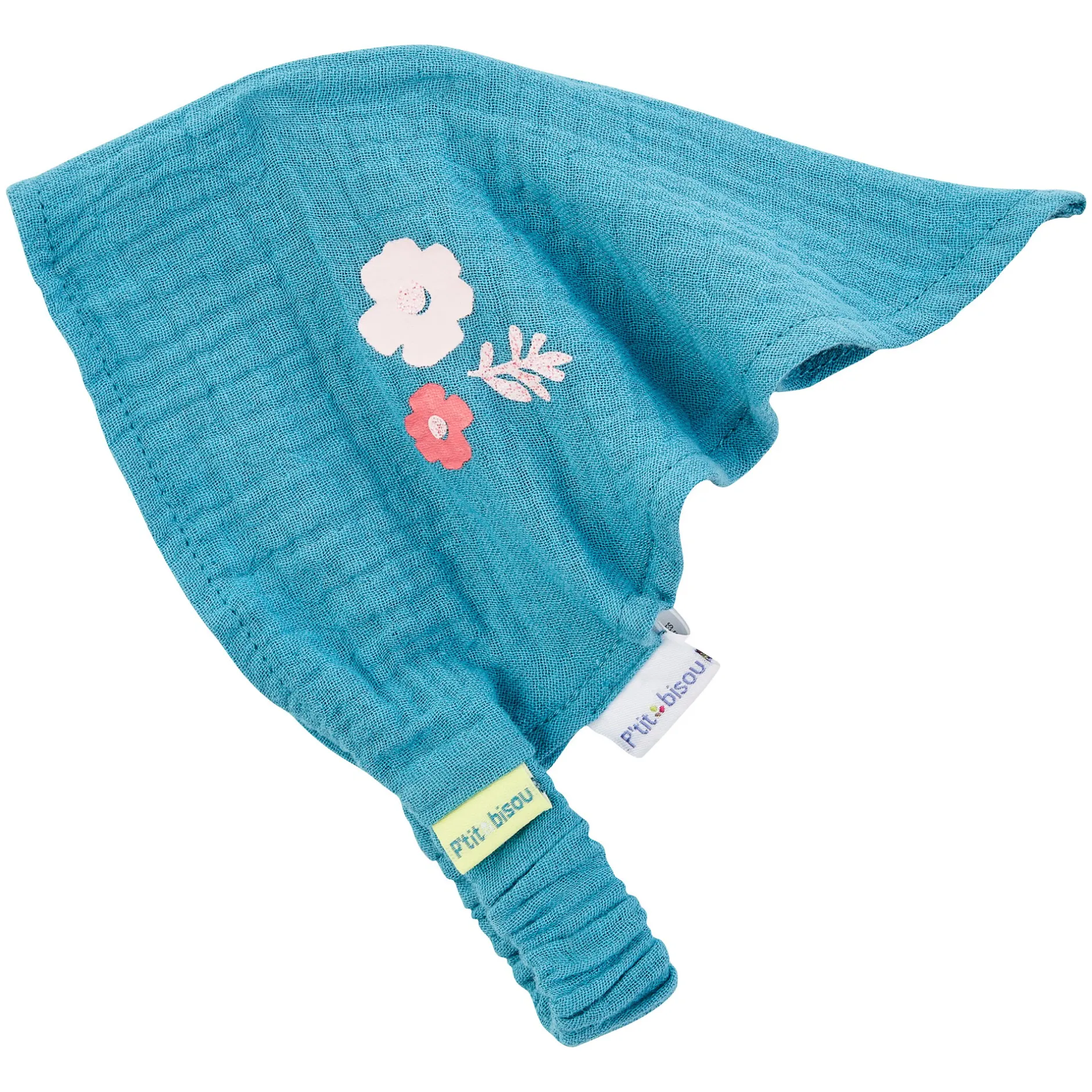 Coiffant forme fichu P’tit Bisou en mousseline gaze gaufrée en coloris vert émeraude.