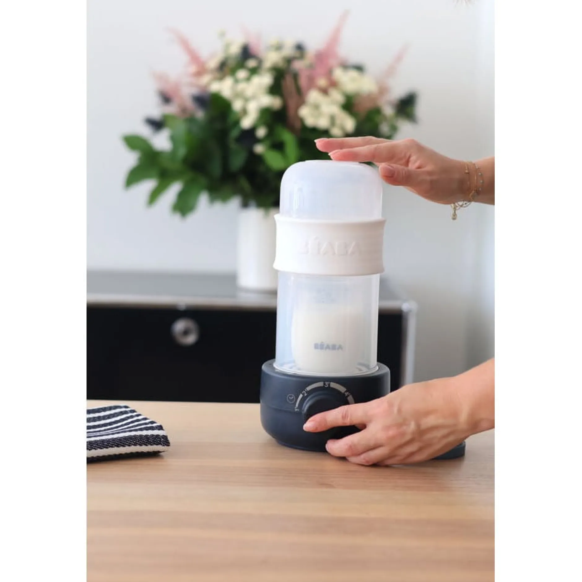 - Minuterie de haute précision : assure la bonne température selon le format et la matière du biberon (voir notice)