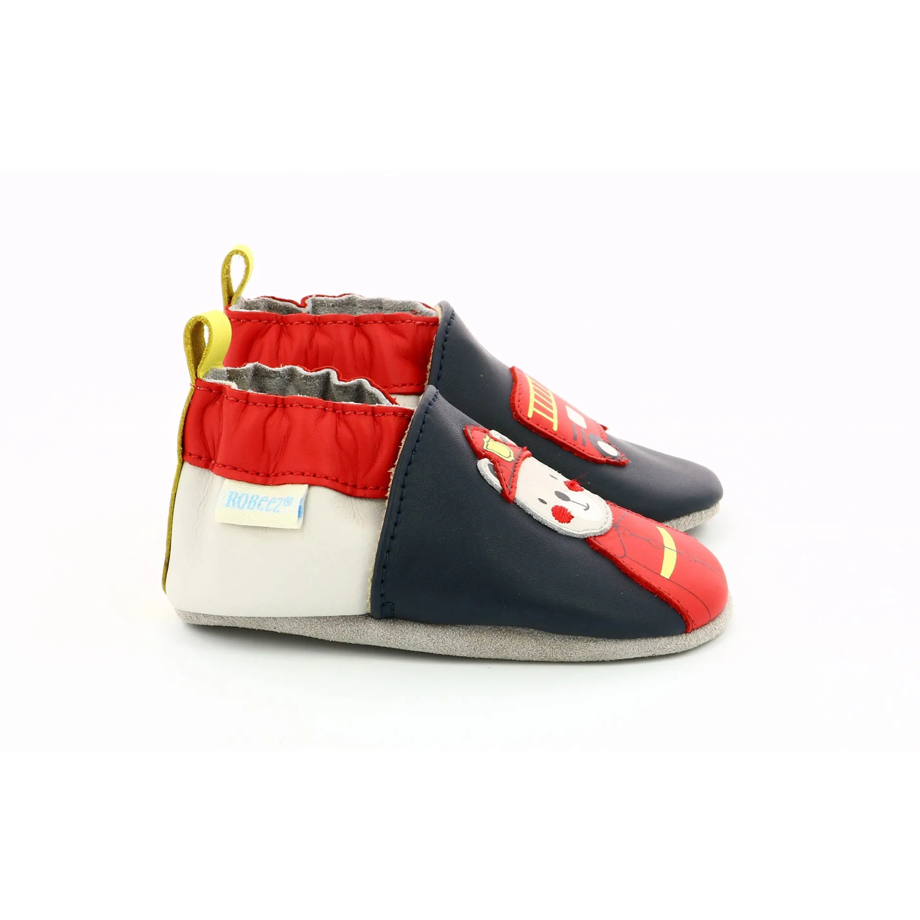 Le modèle Fireman est une paire de chaussons souples pour bébé composée d’une tige en cuir marine et d’une doublure en cuir et textile. Le modèle Fireman marine s’adapte parfaitement au pied de votre bébé tout en le protégeant grâce à sa semelle souple en cuir et sa fermeture élastique qui permet de l’enfiler facilement, tout en assurant un bon maintien à la cheville.