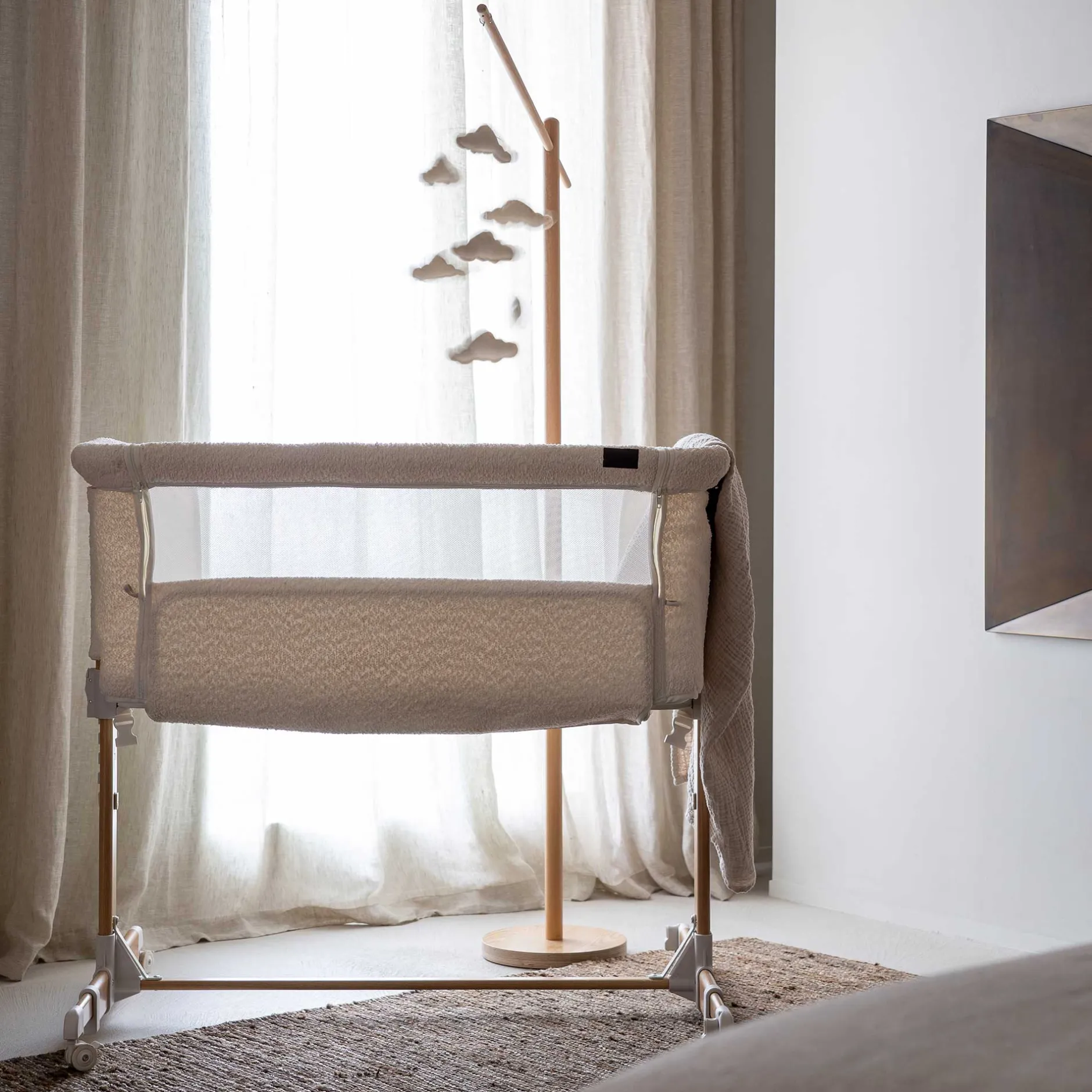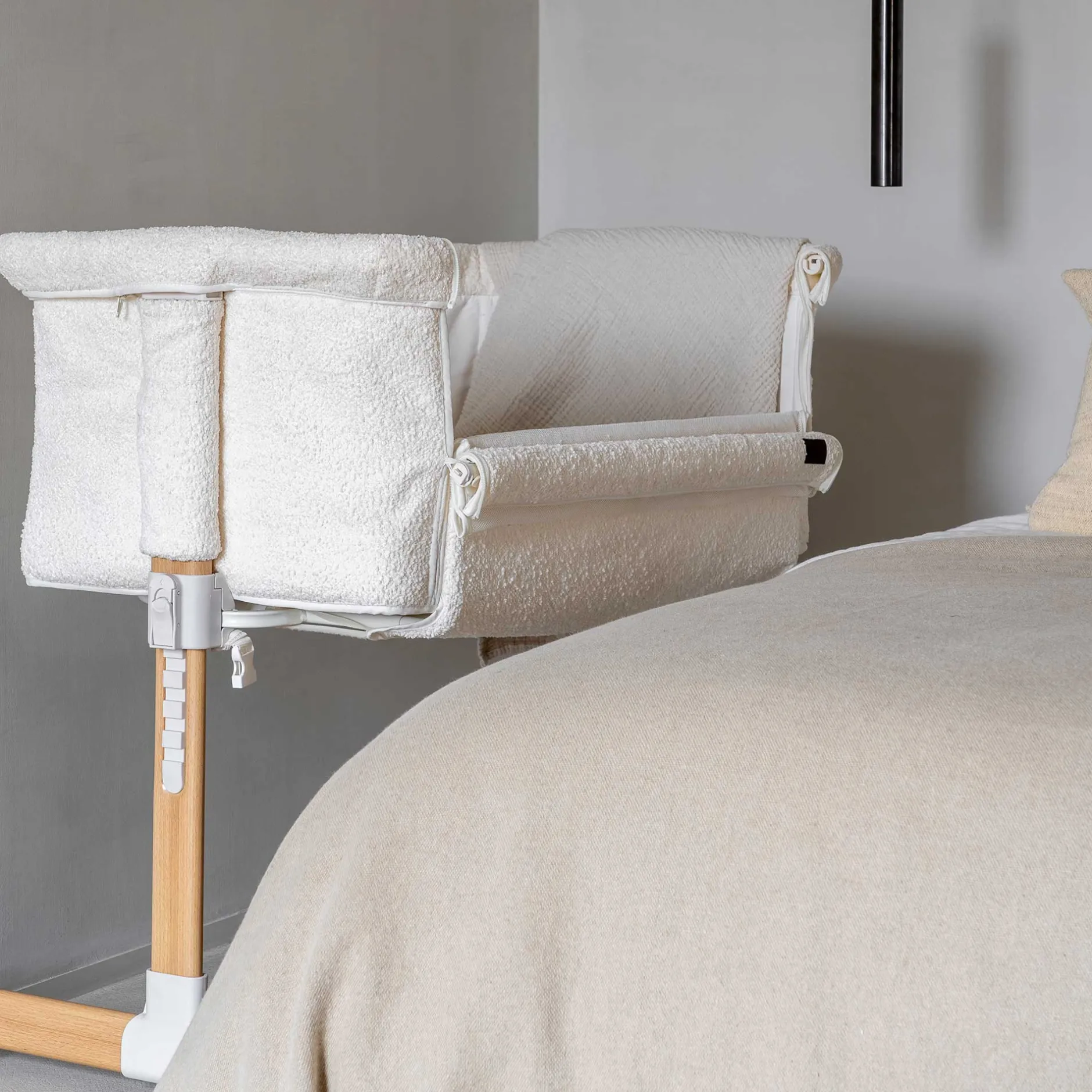 Découvrez le co-sleeper Side by Side, un com- pagnon essentiel pendant les premiers mois avec votre bébé. Ce berceau est conçu pour être placé à côté de votre lit, avec un côté ouvert pour faciliter l’allaitement et réconforter votre tout-petit.