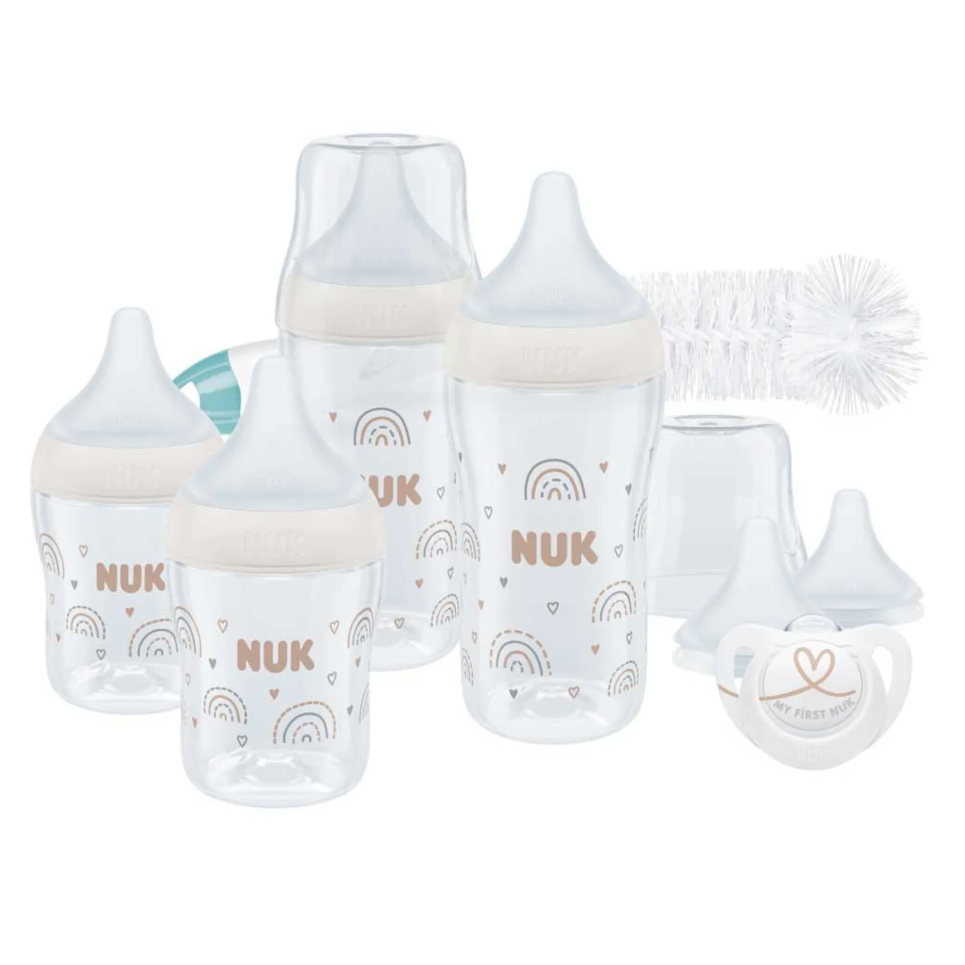 - En plus 2x tétine NUK Perfect Match (taille S & M), 1x sucette NUK Starlight 0-6 mois, 1x NUK goupillon 2in1.