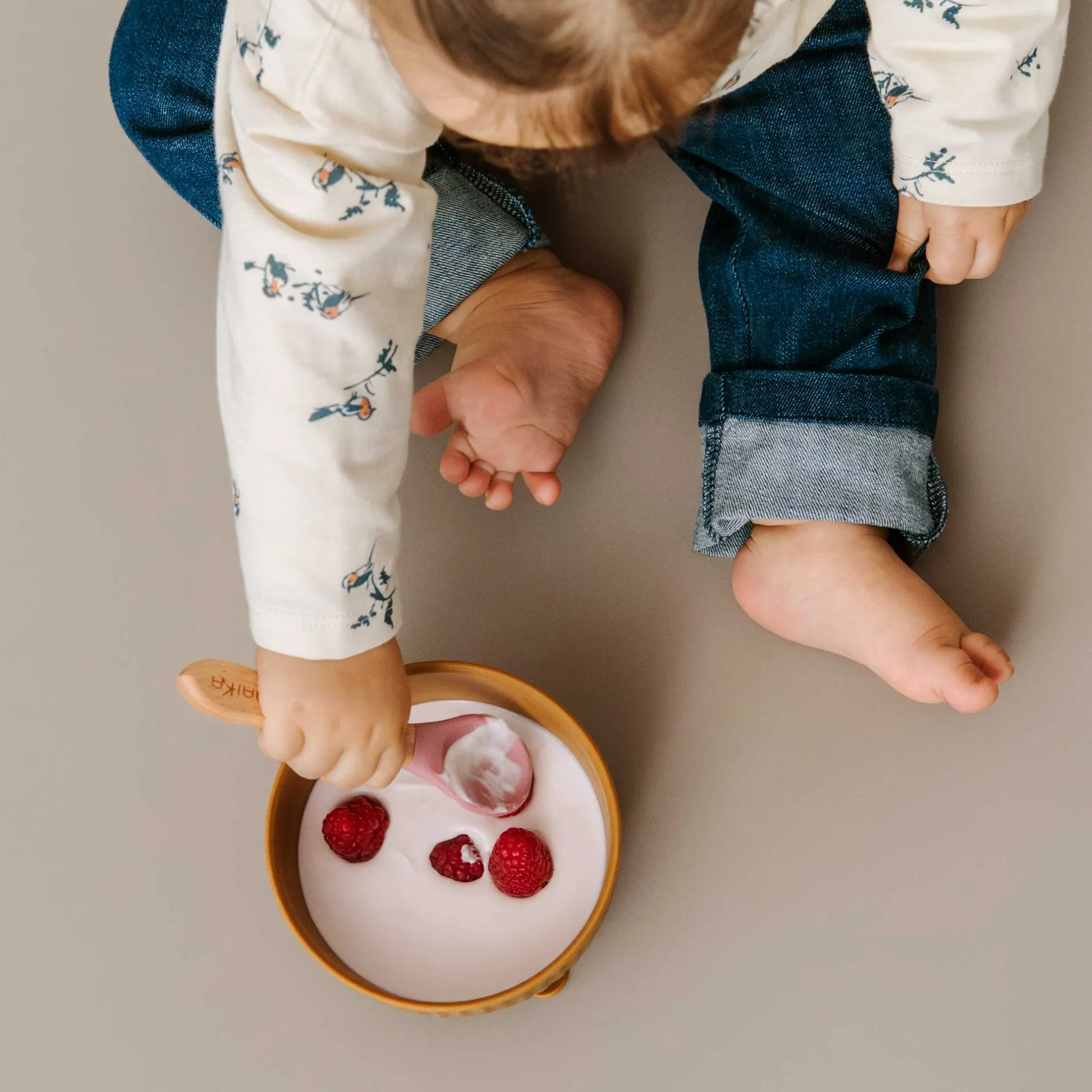 Le bol et l’assiette sont tous deux équipés d’une ventouse pour être fixés à la tablette de la chaise haute ou directement à la table, ce qui évitera de nombreux petits accidents.