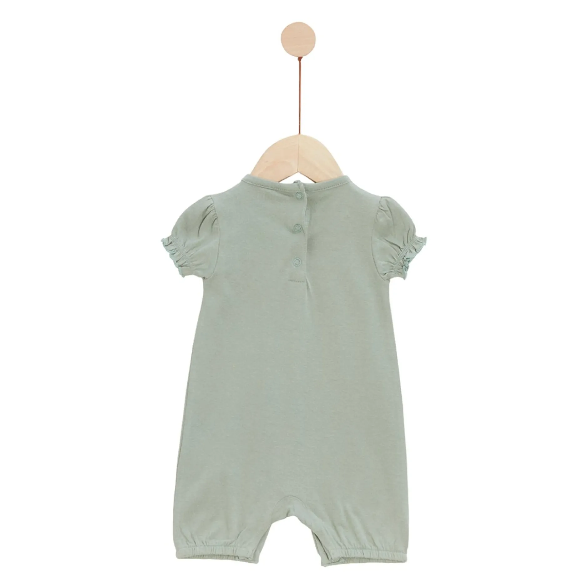 En voilà une combishort adorable ! Ses manches froncées font le charme de la tenue. Mais pas seulement ! Vous pouvez aussi compter sur un joli imprimé de Nala, souligné par le vert du vêtement. Cette combishort est confortable pour Bébé et pratique pour vous : des boutons à pression sont présents à l’entrejambe. Idéal pour changer la couche de Bébé ou pour aller sur le pot.