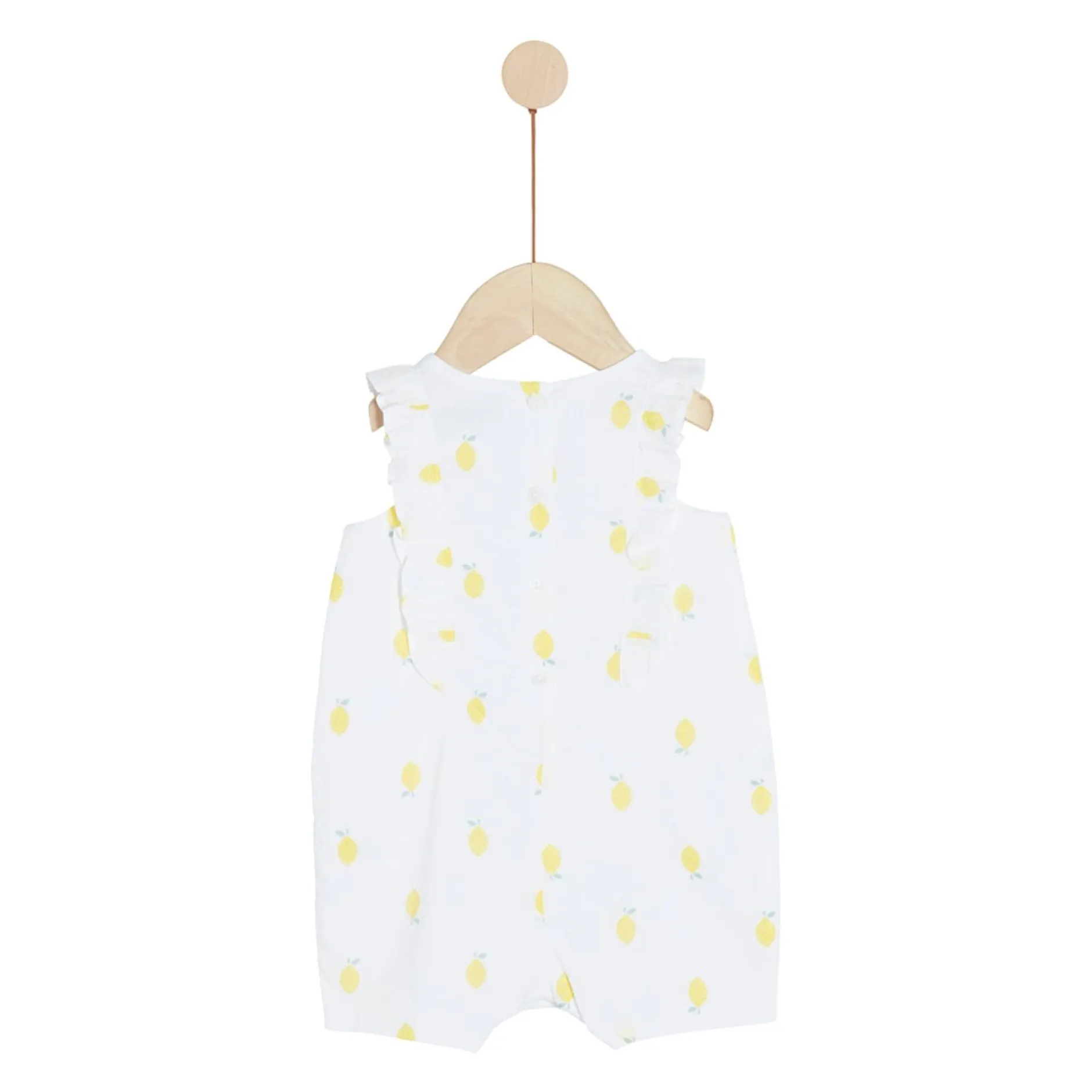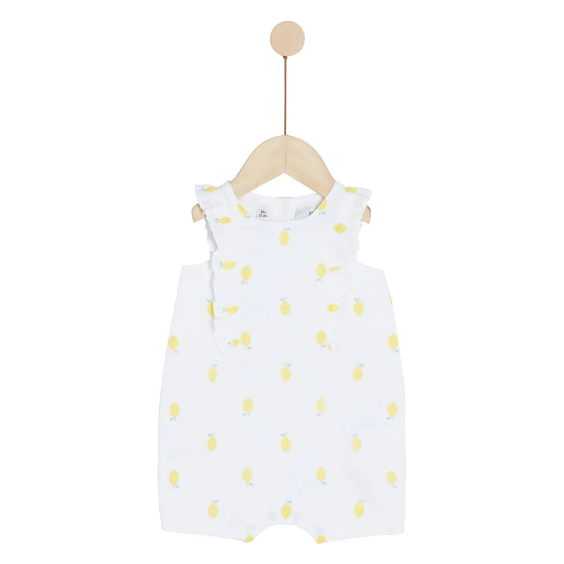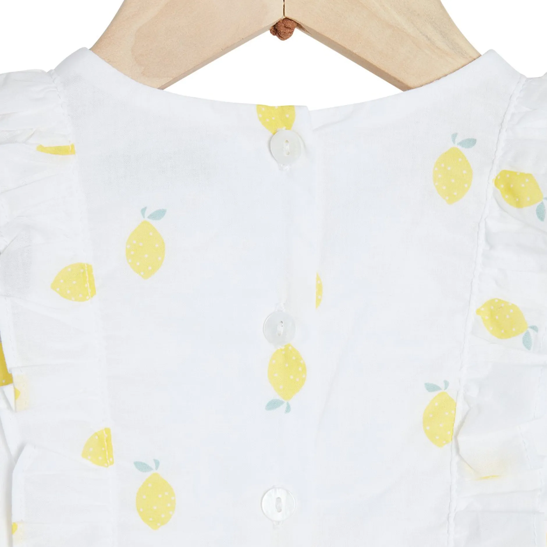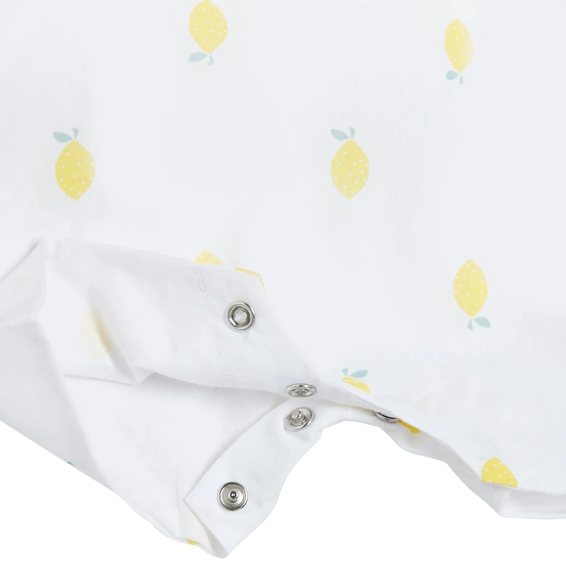 Combicourte Marèse en voile de coton sur fond blanc et impressions de citrons jaunes. Très belle pièce très romantique avec ses volants de part et d’autre pour un côté très tendance. Entièrement doublée de voile pour éviter la transparence et pour une meilleure finition. Ouverture entrejambes par pressions cachées et ouvertures dans le dos par des boutons gravés à la marque.