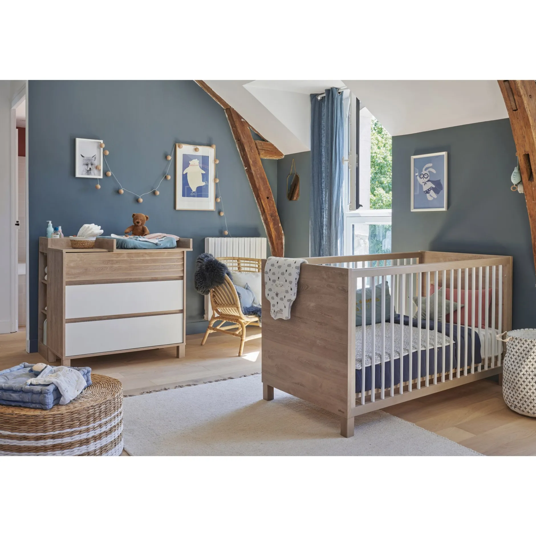 Craquez pour le pack trio de la chambre Achille, composé d’un lit 70 x 140 cm évolutif, d’une commode et d’une arm…