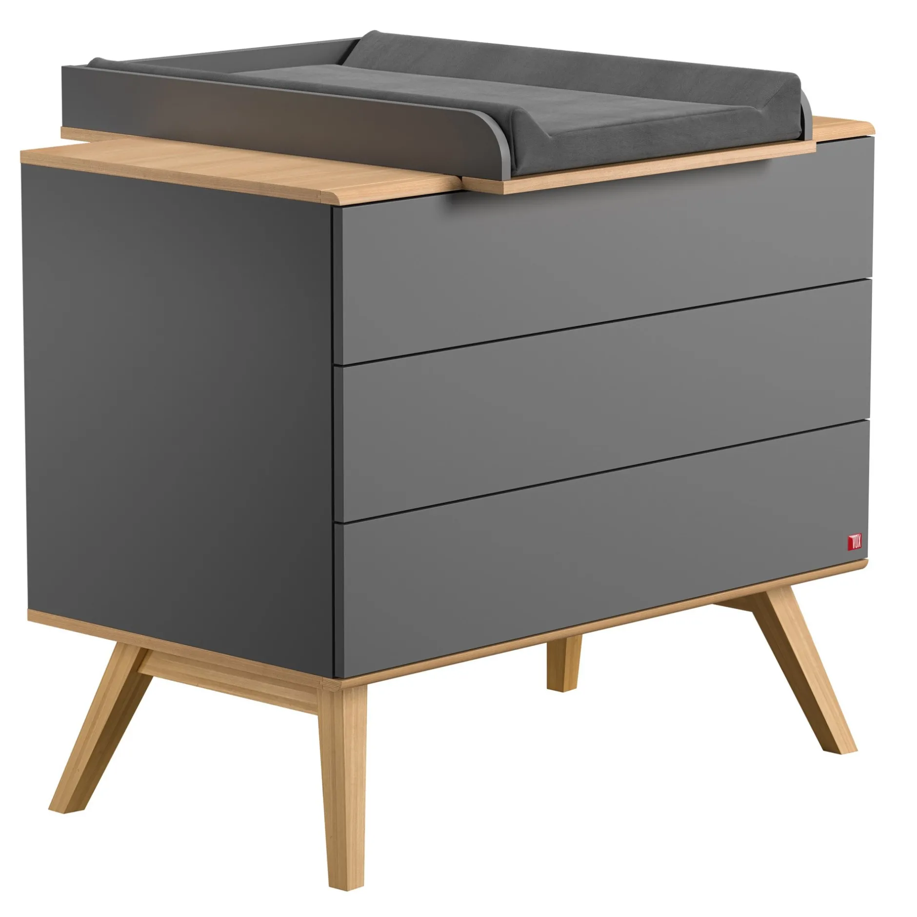 Conçue en chêne massif et mélaminé haut de gamme, cette commode design et élégante peut recevoir un en option afin de changer votre bébé face à soi. Il offre une grande surface pour le change de votre bébé et pour garder tout le nécessaire de toilette à porter de main. La bonne hauteur des bords garantit la sécurité de l’enfant et crée un environnement sûr et confortable.
