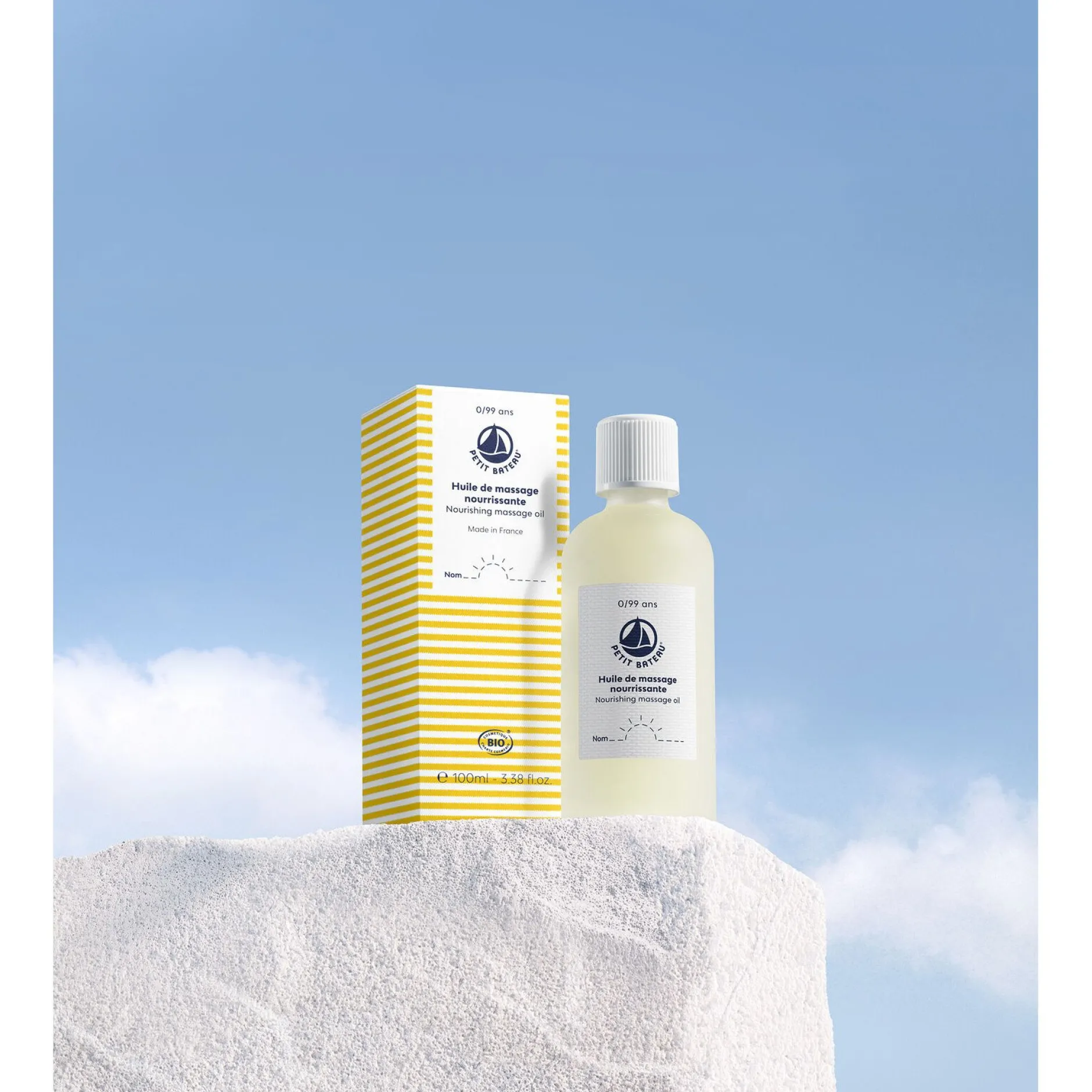 - Conçue à partir d’une association de trois huiles BIO (argan, amande douce et jojoba) et d’extrait de calendula BIO cultivé et récolté en France.