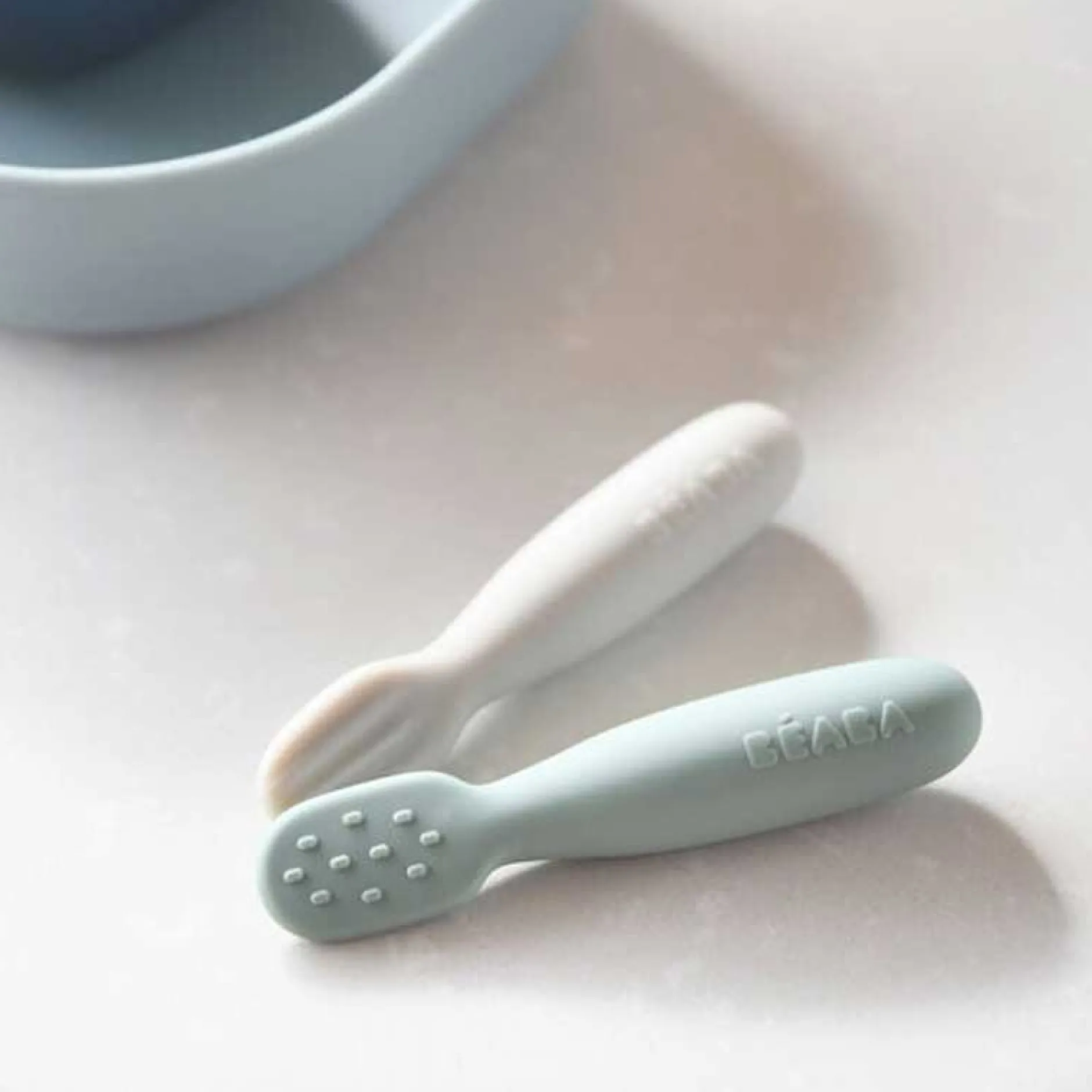 Embouts flexibles : spécialement étudiés pour s’adapter aux besoins de l’enfant (la cuillère vague est moins flexible que la version picots).
