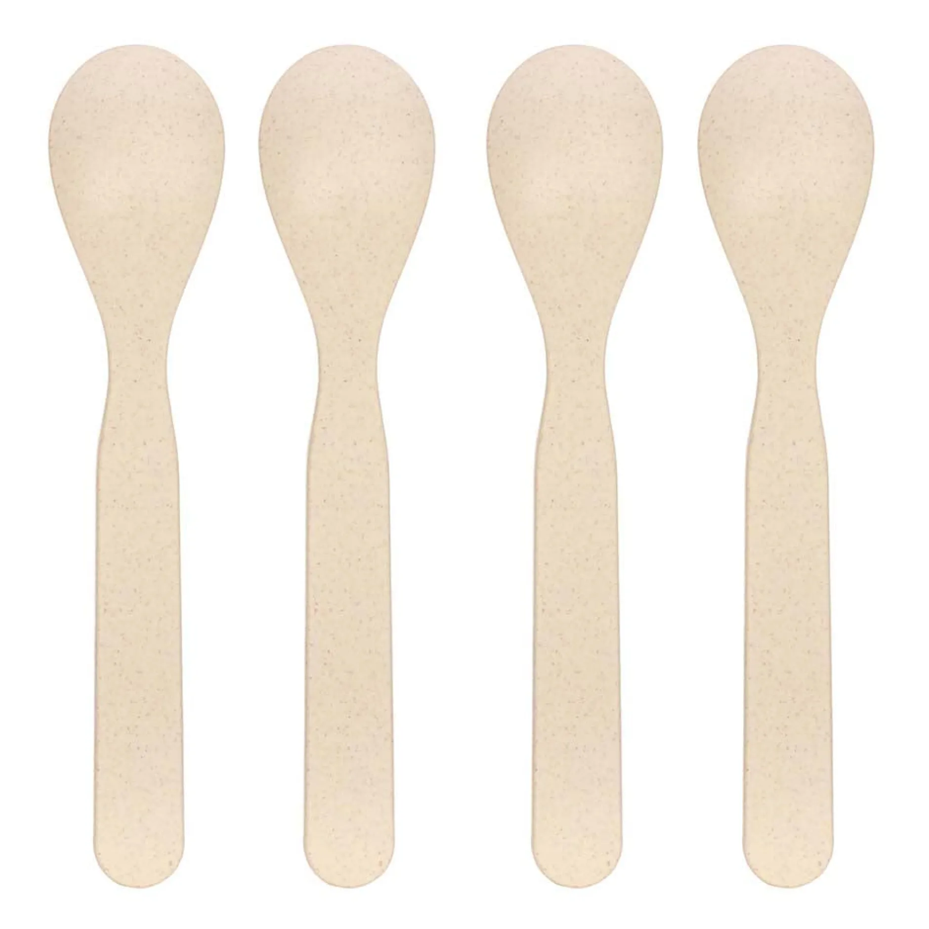 Les 4 cuillères avec leurs adorables imprimés de smiley et d’arc en ciel font partie de la collection de vaisselle pour enfant Happy Rascals de LÄSSIG.