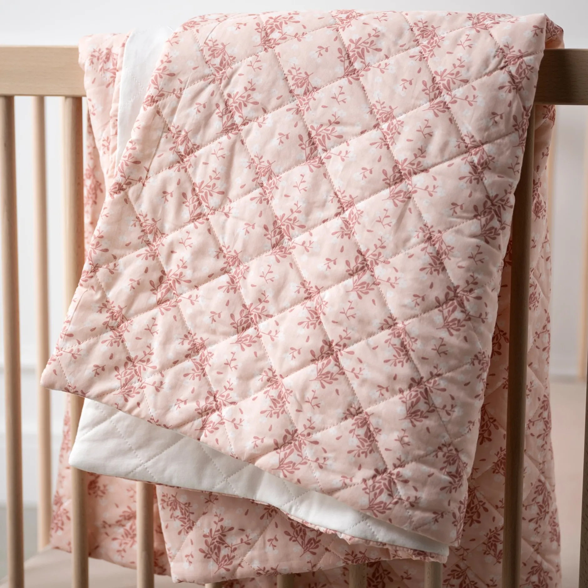 Couverture matelassée Petit à petit d’un côté en jersey écru et de l’autre en voile floral, toute douce. Ce plaid sera le meilleur ami de bébé et le maintiendra bien au chaud aussi bien à l’intérieur de la maison qu’à l’extérieur en ballade.