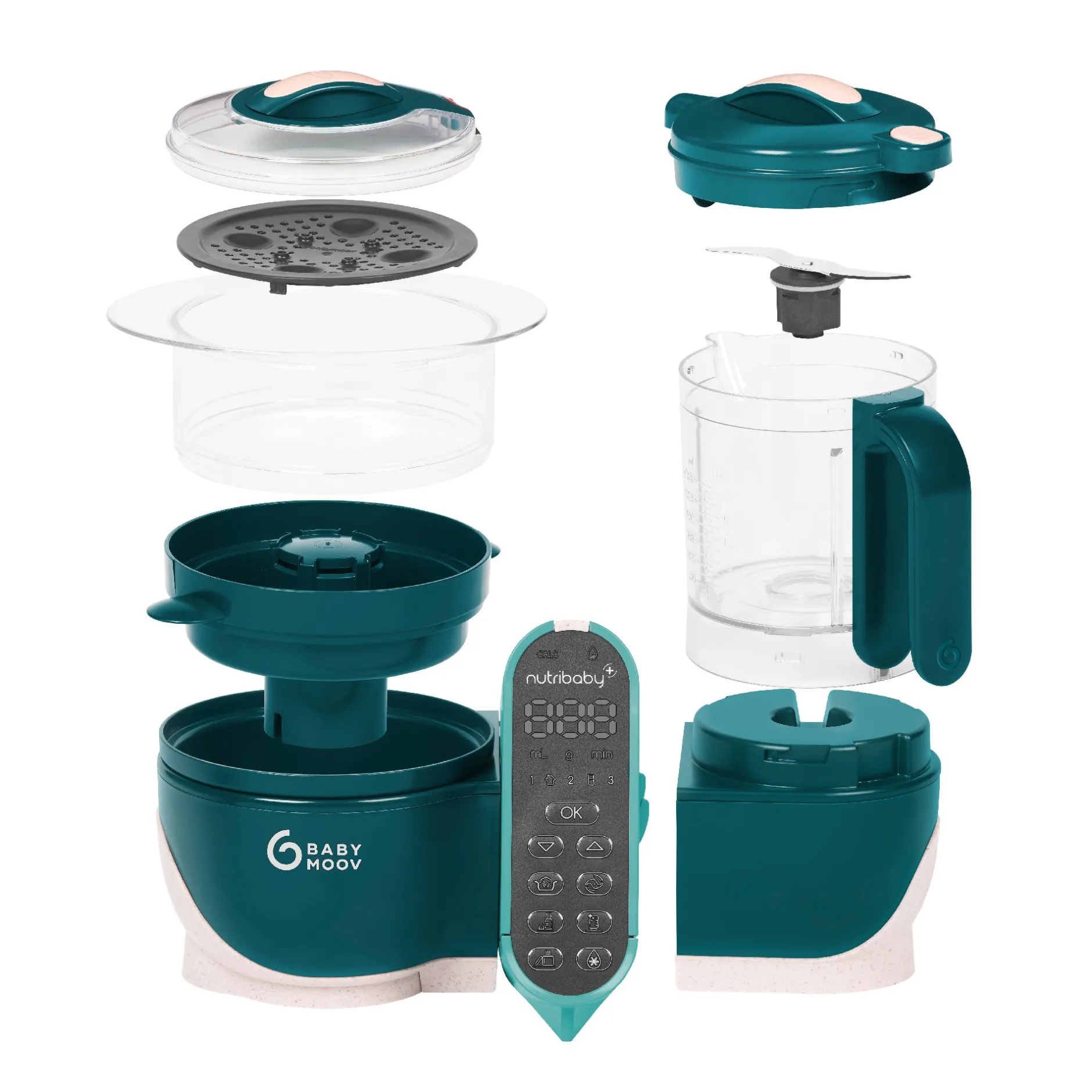 Le robot multifonctions Nutribaby(+) vous accompagne pendant toutes les étapes du développement de votre enfant, du biberon à la diversification et plus encore. Multifonctions, le Nutribaby(+) est doté de 6 programmes automatiques, avec 1 bouton = 1 fonction : cuisson à la vapeur, mixage, décongélation, chauffe des petits pots, stérilisation et chauffe-biberons. Ce robot culinaire est également équipé d’une console centrale tactile et d’un minuteur intégré (alarme sonore et visuelle, arrêt automatique).
