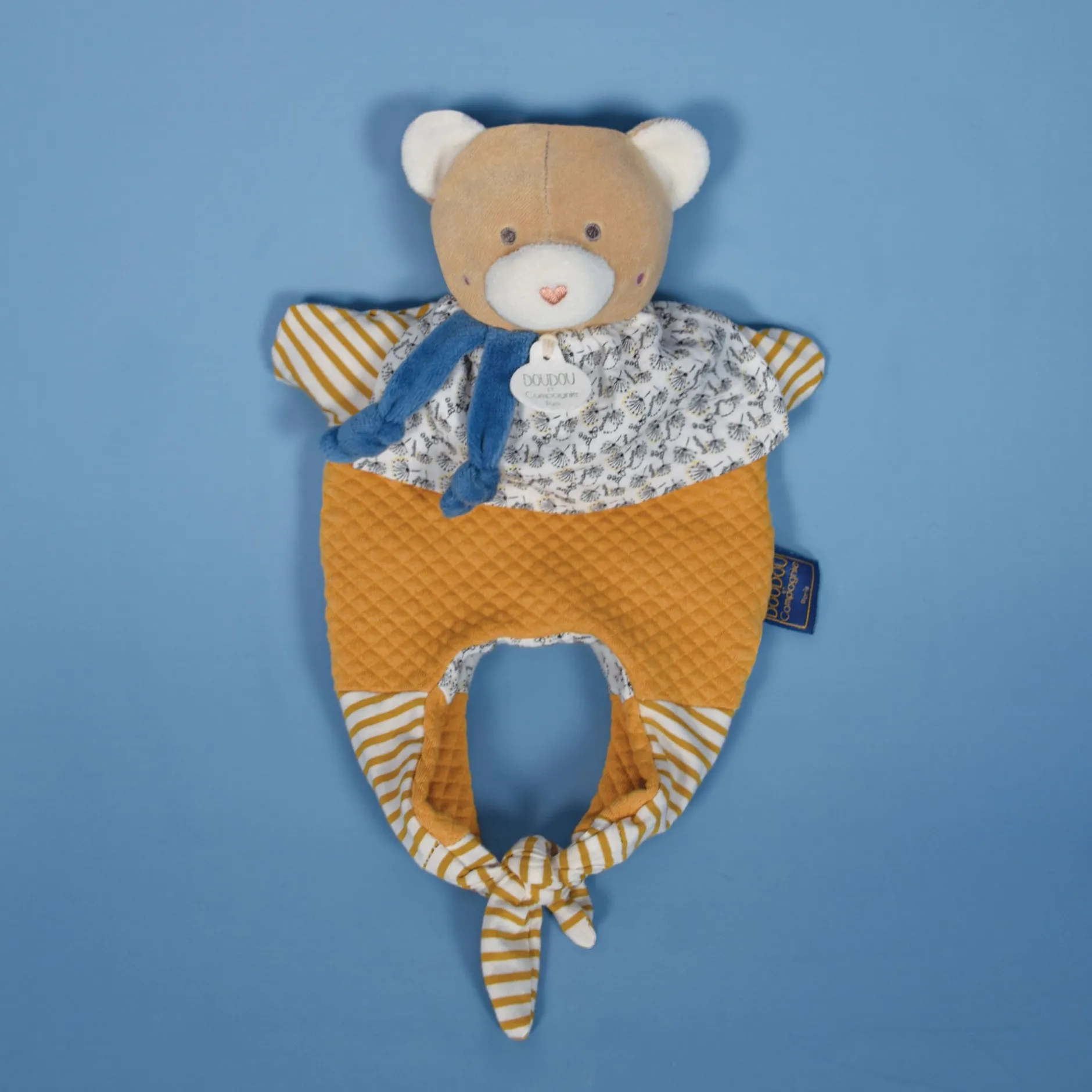 Un très joli Doudou futé 3 EN 1 ! A la fois Doudou tendre et marionnette amusante, il est aussi réversible et se transforme, comme un jeu d’enfant, en un chouette petit sac qui protège Doudou. Pratique pour la promenade ou à la maison pour jouer, en toutes circonstances ce Doudou sera avant tout rassurant et apaisant pour bébé.