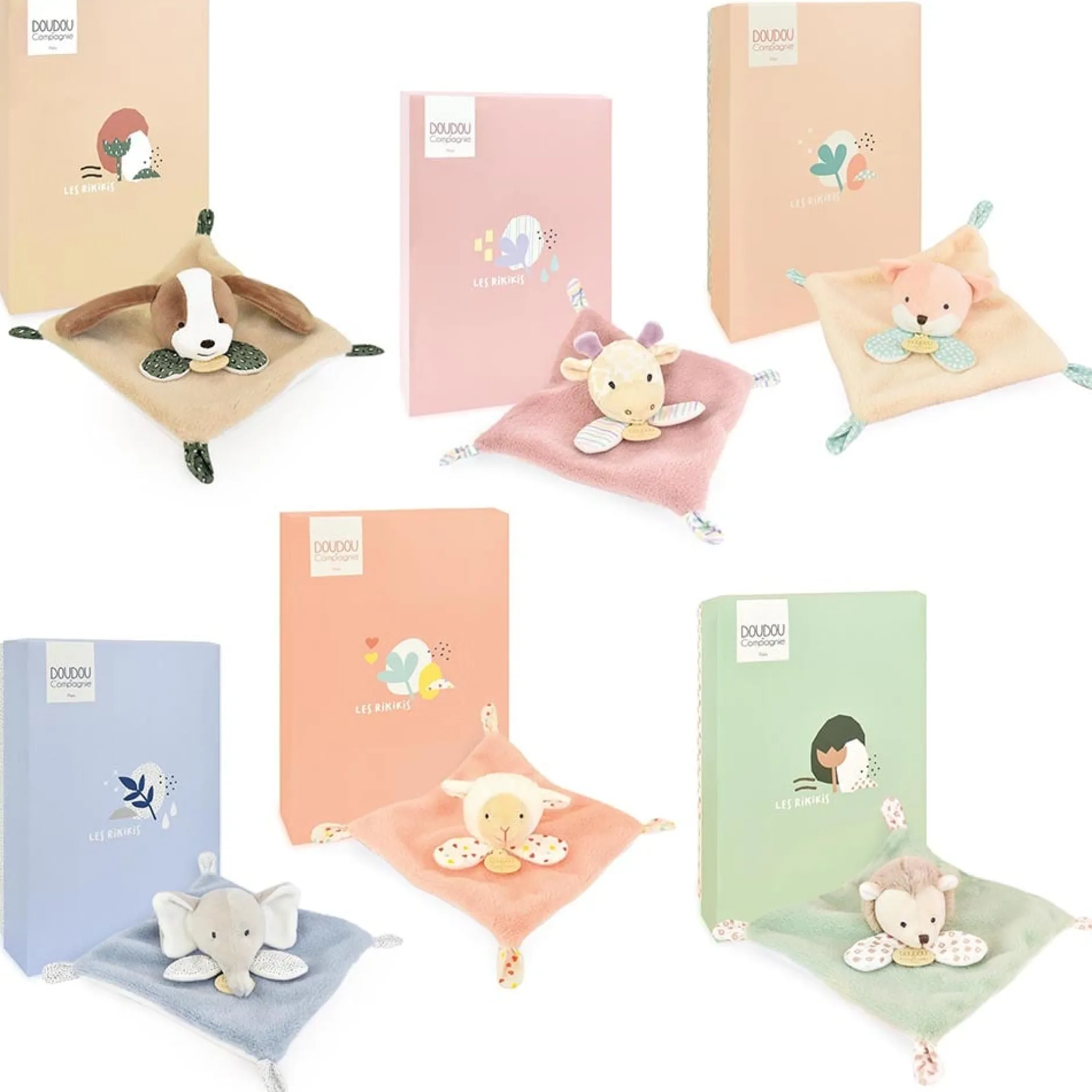 Doudou éléphant, chien, girafe, renard, hérisson ou agneau. De belles frimousses aux yeux brodés prêts à veiller sur les tout-petits durant les moments de séparation le jour comme la nuit. Ces Doudous, conçus avec plusieurs matières et éléments à manipuler peuvent avoir un effet d’apaisement tout en éveillant leur motricité fine. Un compagnon précieux présenté en boîte cadeau qui peut être réutilisée pour y glisser de merveilleux précieux trésors ! À offrir dès la naissance.
