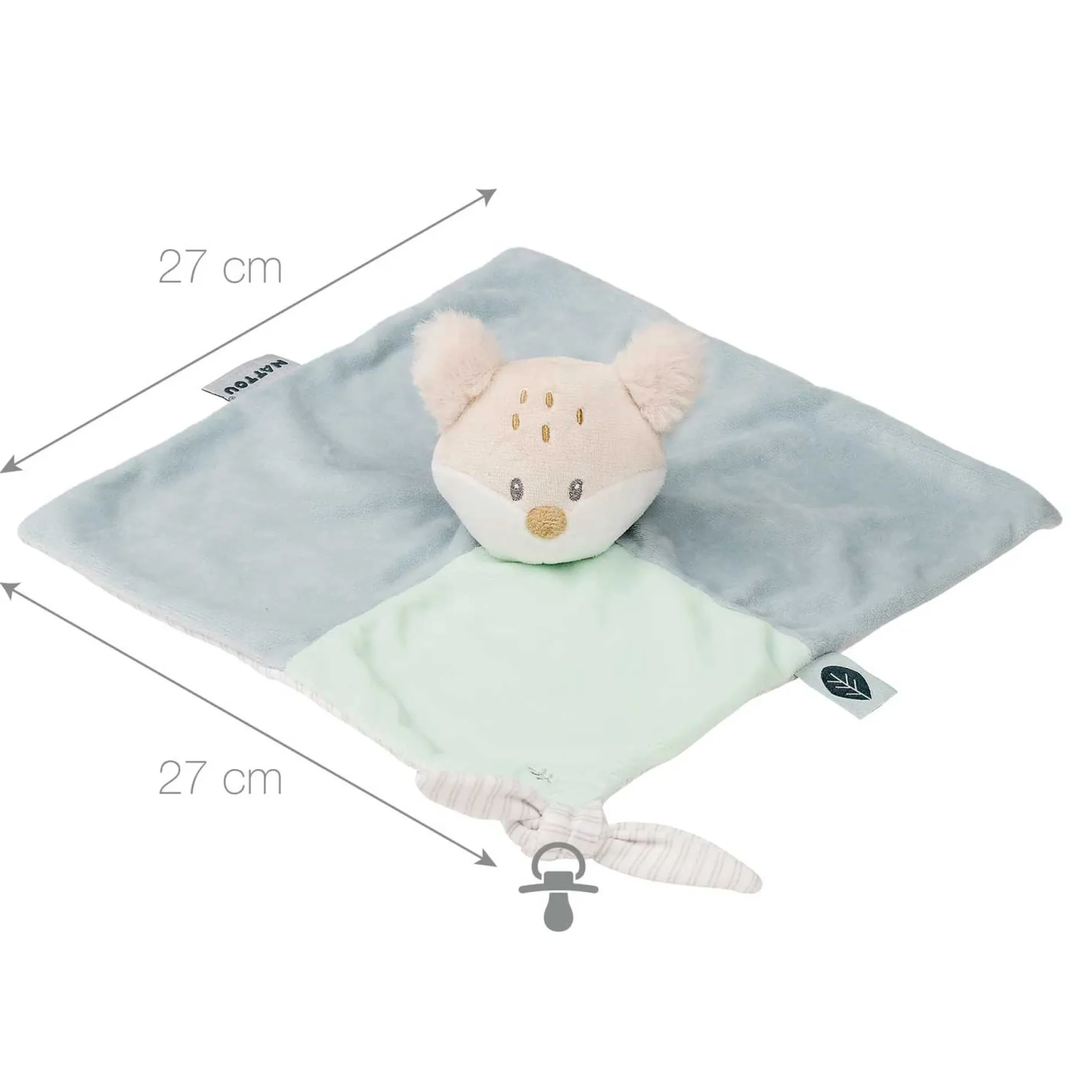 Ce doudou offre de nombreuses possibilités de préhension surprenantes pour votre tout-petit. La tête et les étiquettes séduisantes peuvent être agréablement saisies par votre bébé. De plus, une attache pratique pour la sucette est prévue.