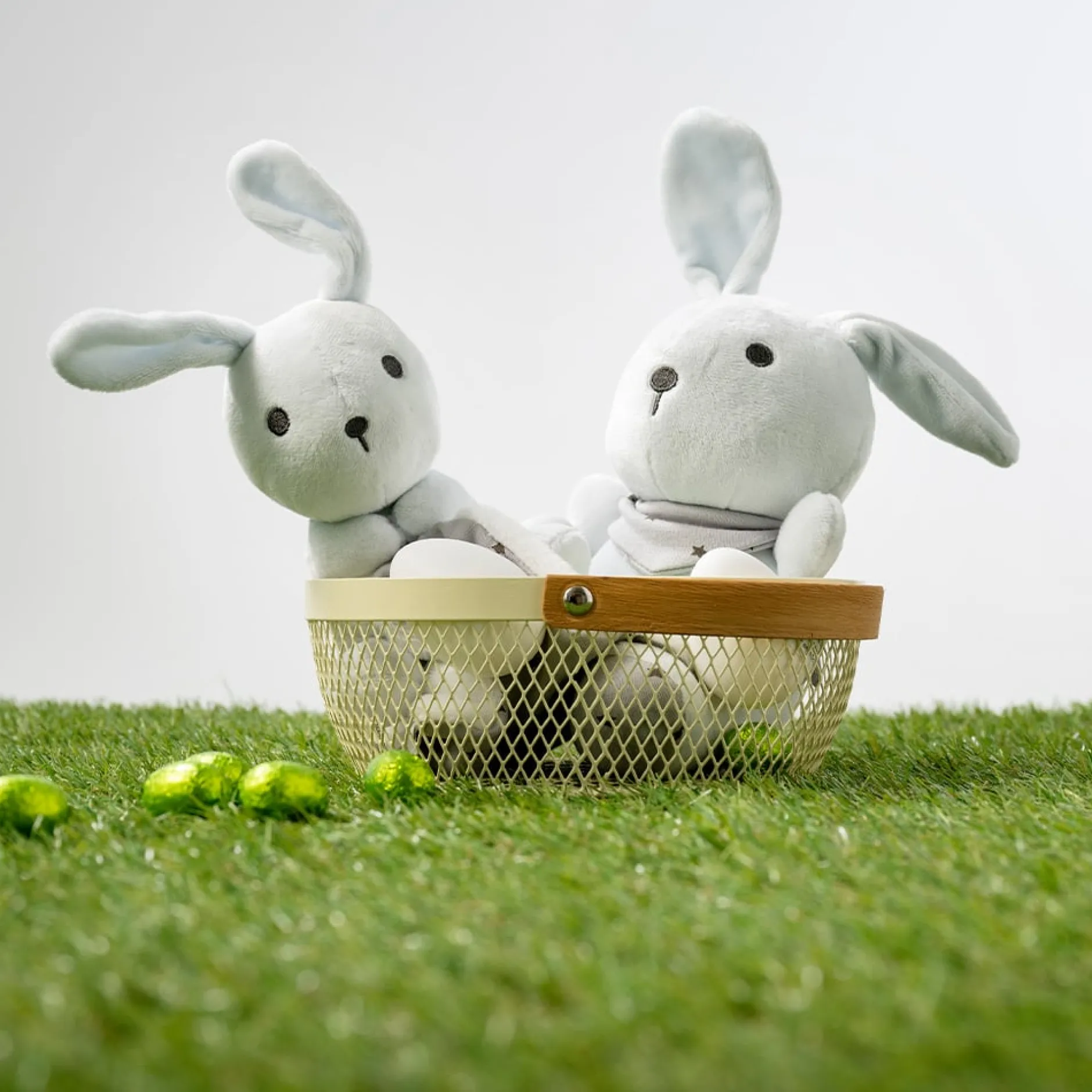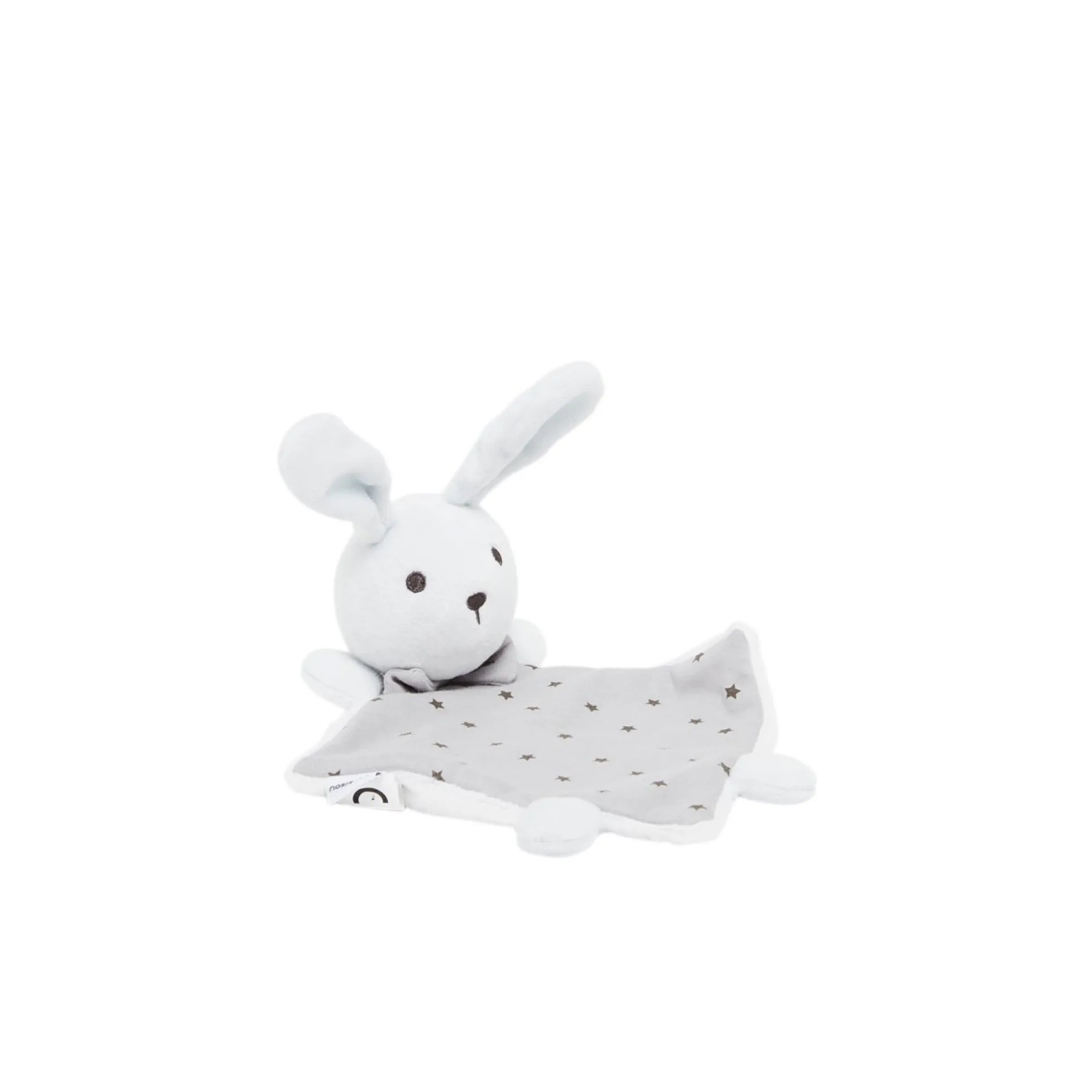 Très craquante avec son doudou (qui sera aussi celui de bébé !) avec une face en fourrure écrue toute douce et une face en jersey. Ce petit lapin est présenté avec la petite tête en velours et le reste du corps est composé du doudou. Hauteur de 30 cm environ. Cette peluche sera le plus fidèle ami de bébé pour la journée et surtout la nuit. Un doudou inséparable !