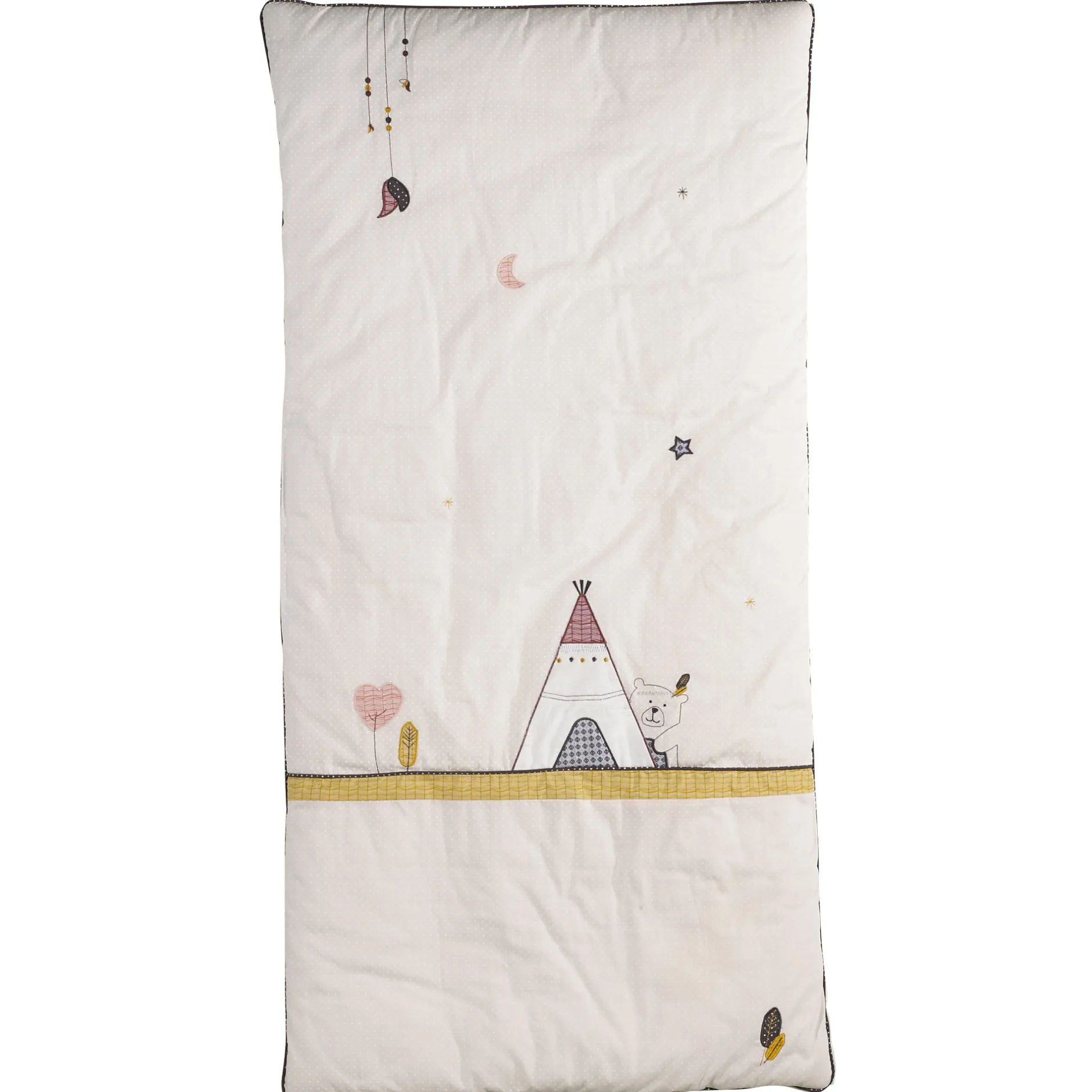 Pour parfaire la déco de la chambre de bébé, cet édredon Timouki s’adapte sur tous les lits 120×60 cm. Sauthon a ima…