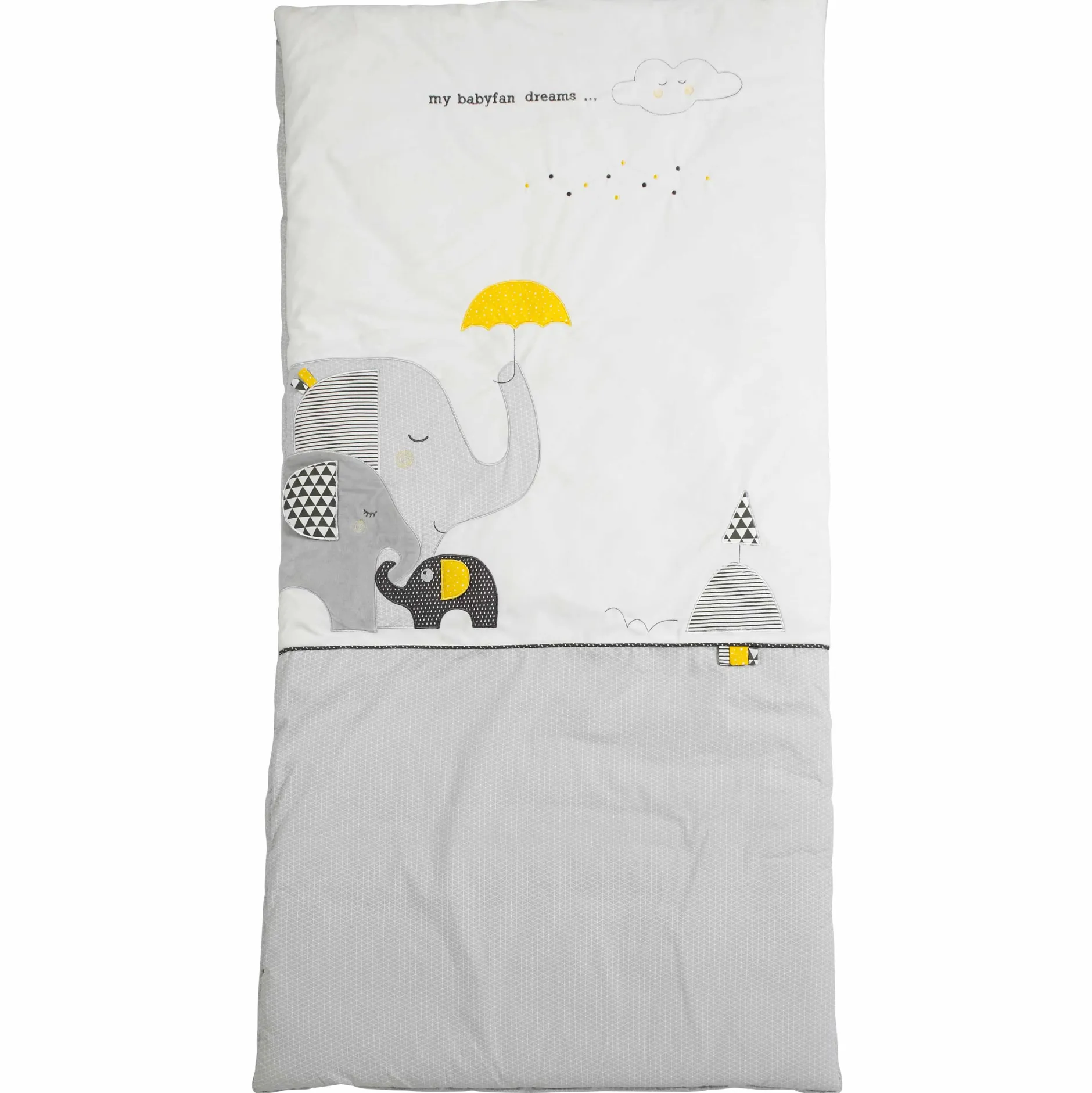 Pour parfaire la déco de la chambre de bébé, cet édredon convient à tous les lits 140 x 70 cm. La famille Babyfan toute entière accompagnera bébé aux pays des rêves.