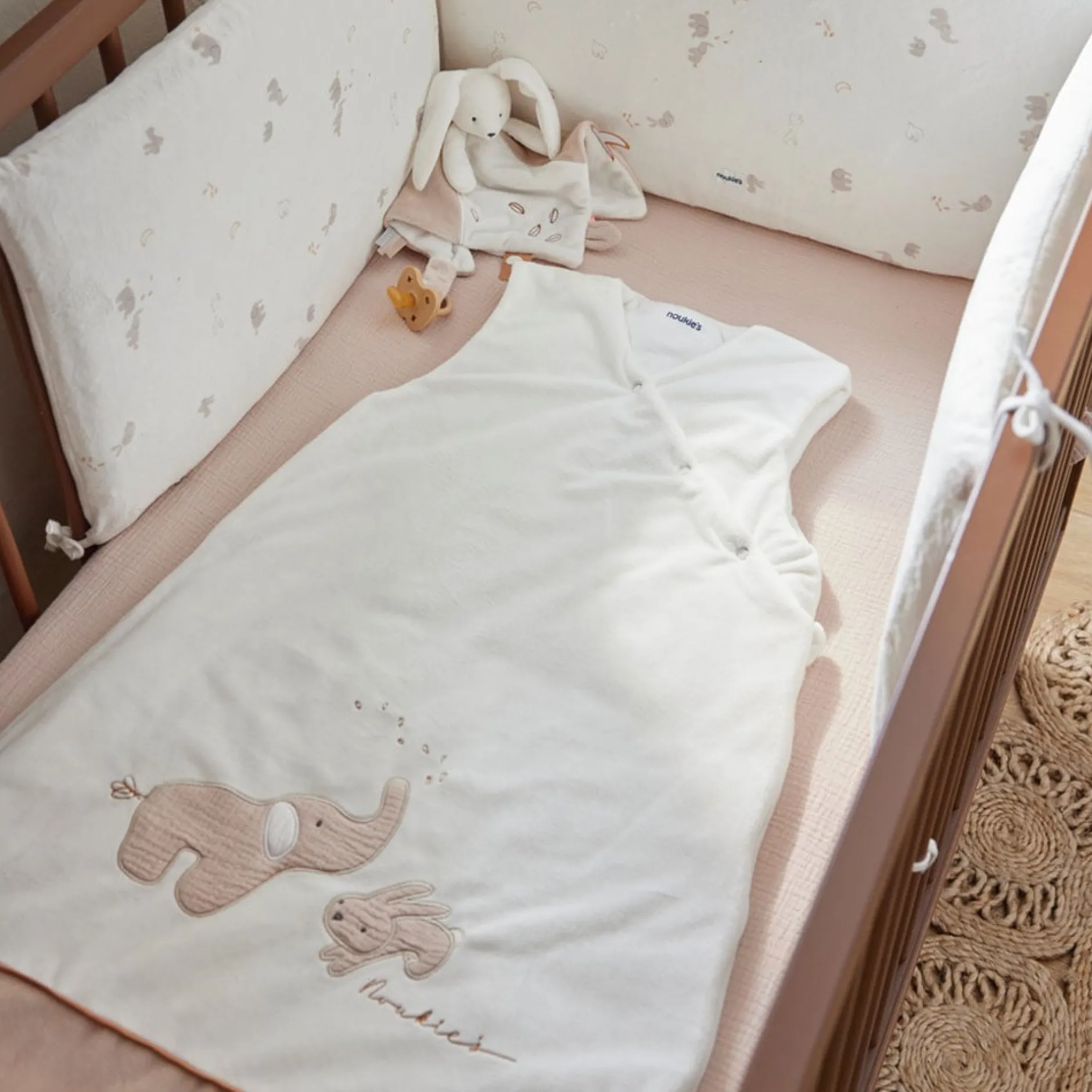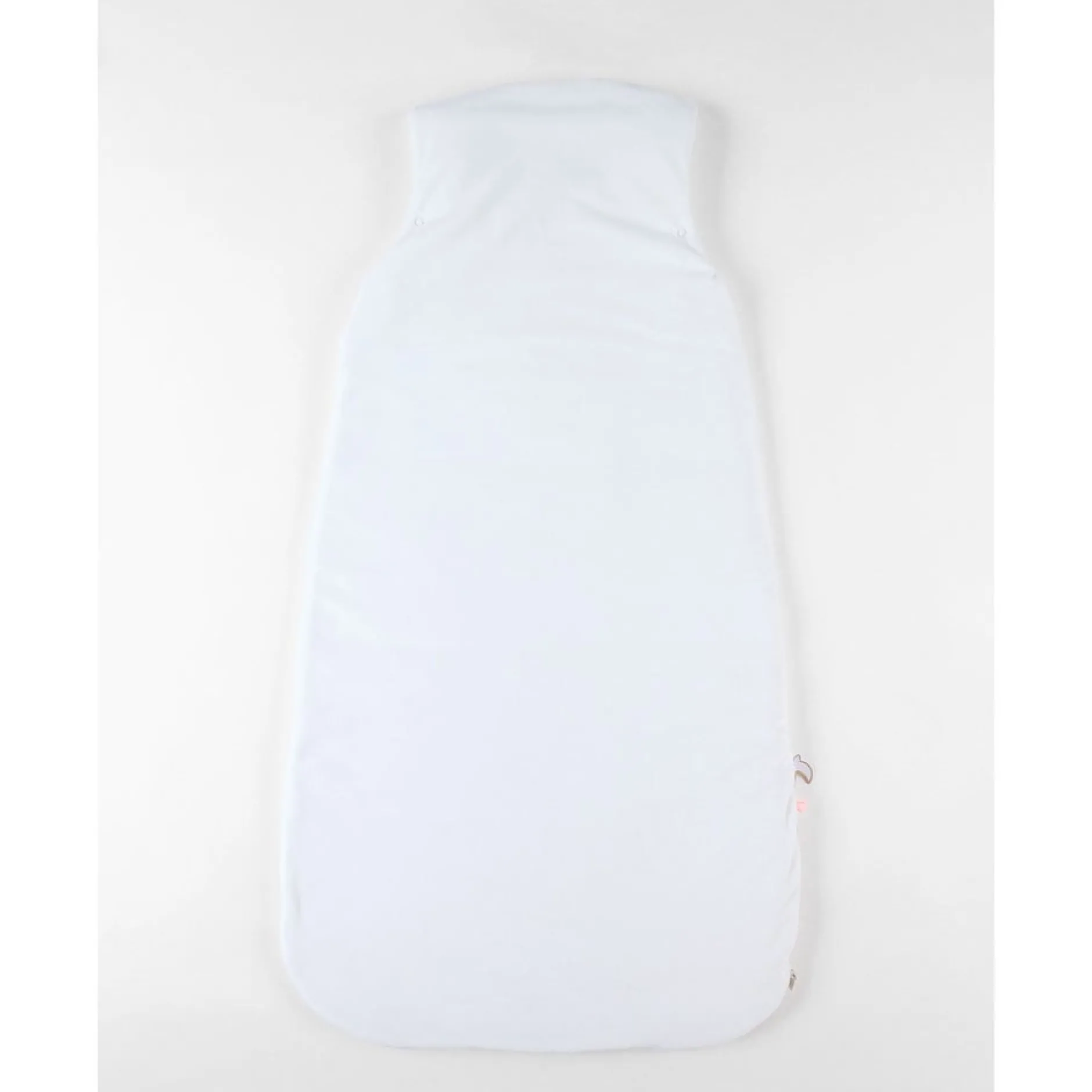 Dans son cocon de Veloudoux® rebrodé des personnages Bali et Moka, la gigoteuse offre à bébé un doux sommeil.