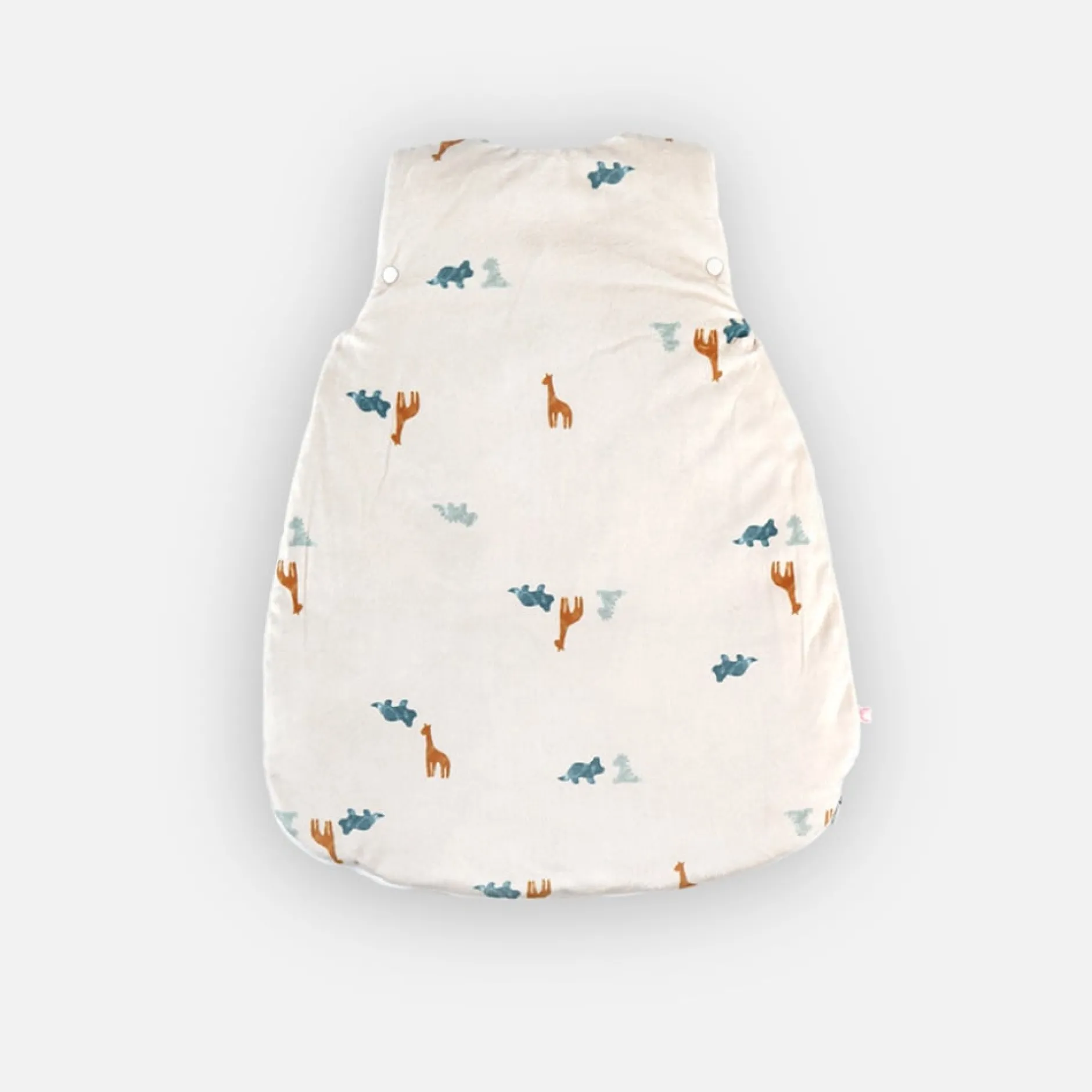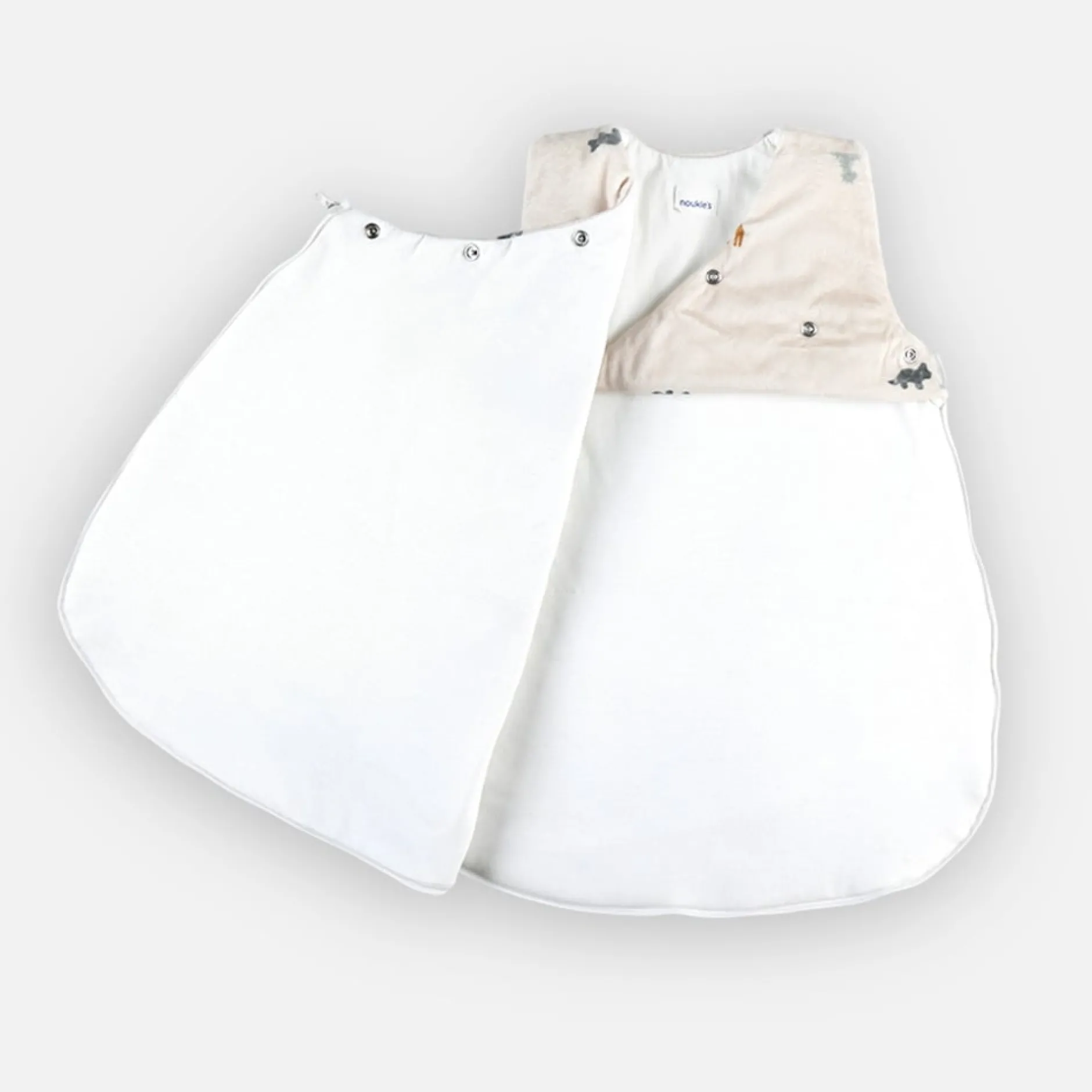 La Gigoteuse 100 cm (6-36M) en Veloudoux® beige rebrodée de de la collection Tiga, Stegi & Ops, est idéale pour la mi-saison et garde bébé bien au chaud pendant son sommeil.