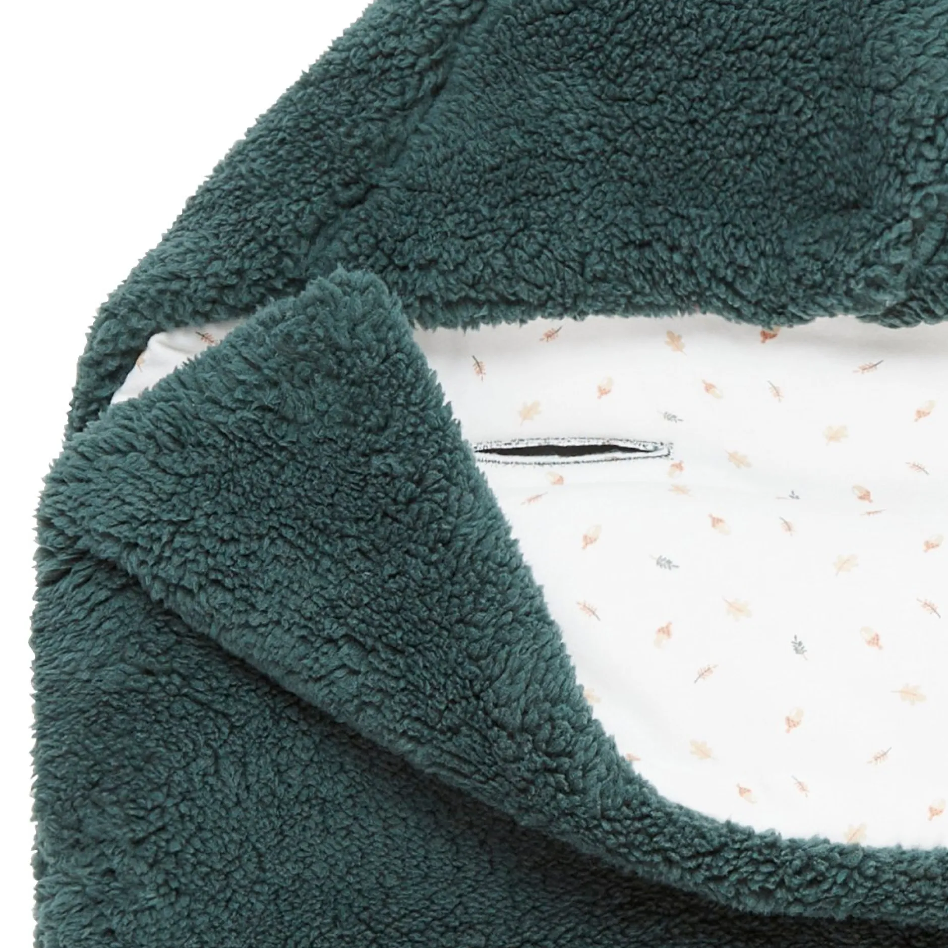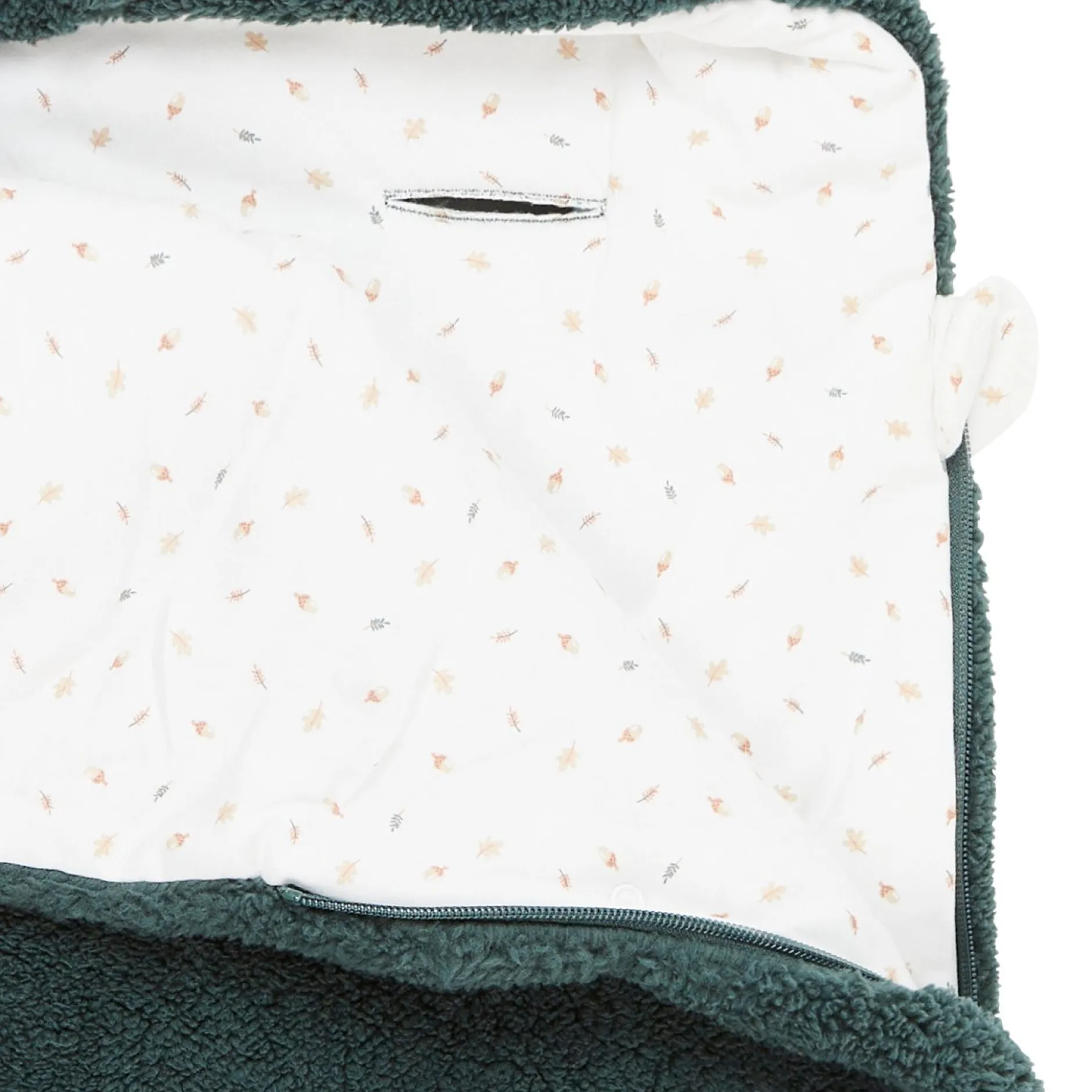 Nid d’ange P’tit Bisou en fausse fourrure bouclette toute douce en coloris vert sapin avec un imprimé automnal représentant des éléments de la forêt : gland, feuilles etc, ou encore en coloris rose framboise très tendance avec un imprimé floral très romantique…Elle est garnie de ouate pour un meilleur confort.