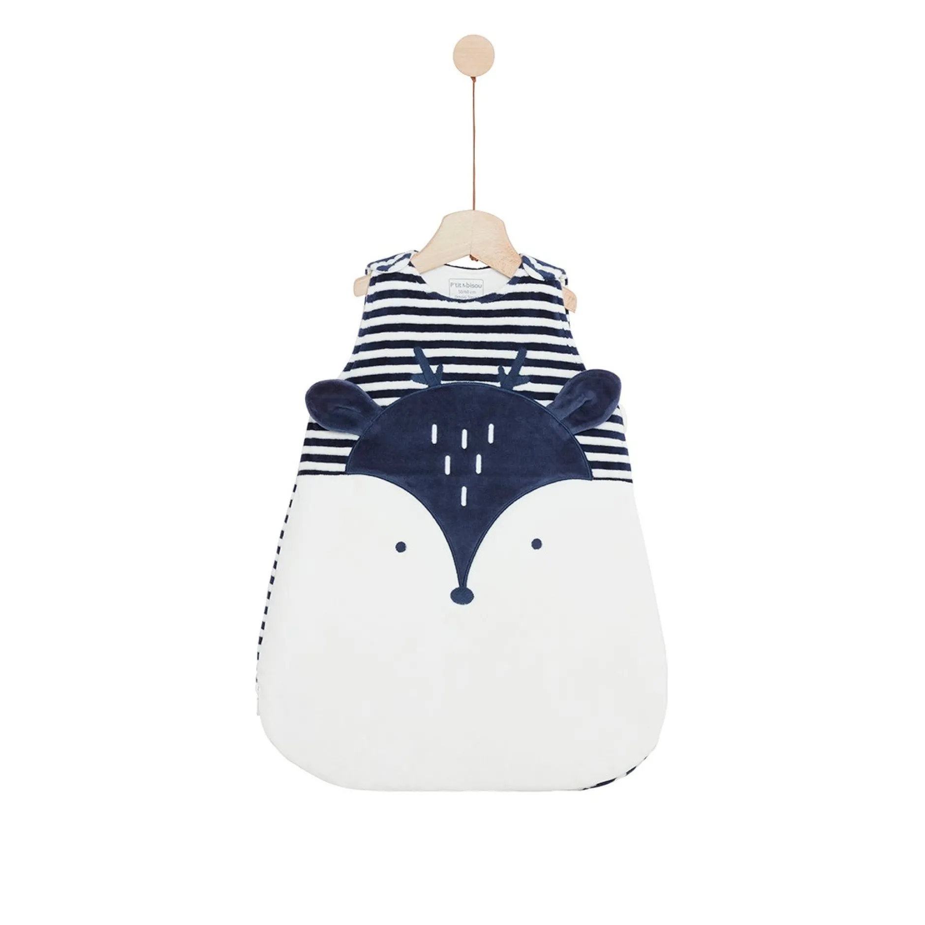 Gigoteuse P’tit Bisou en velours tout doux bleu marine et écru.