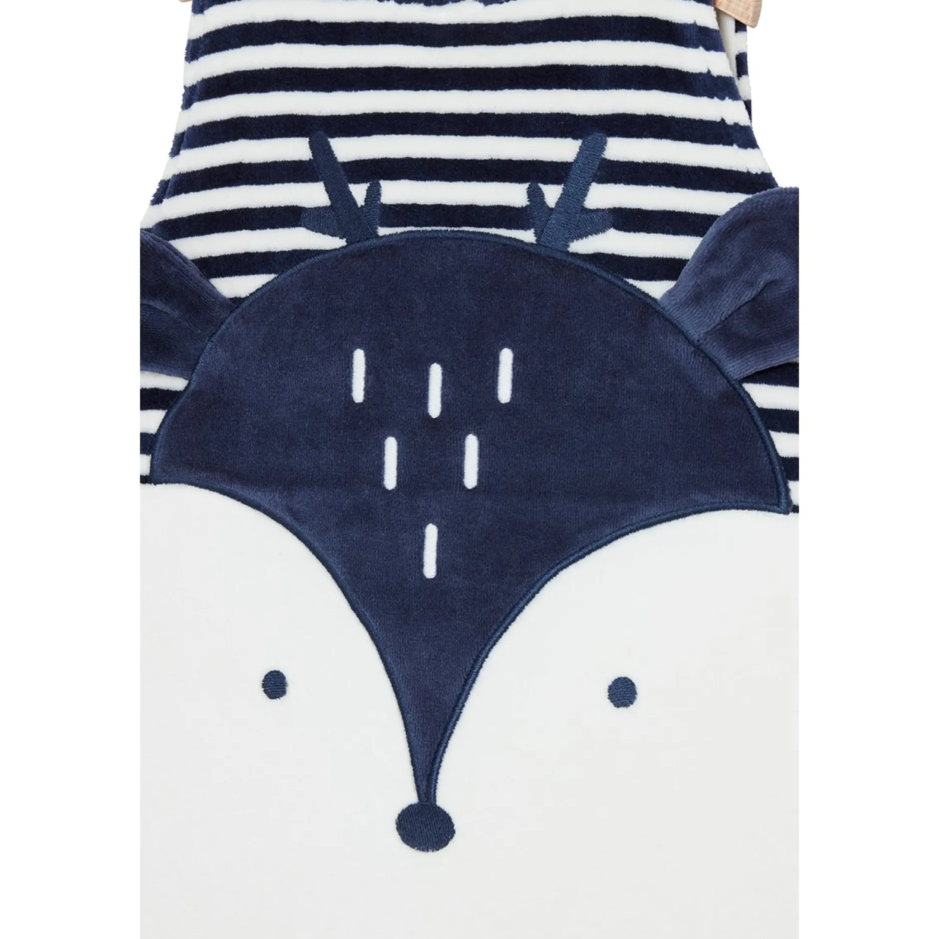 Gigoteuse doublée de jersey unie et ouatinée pour plus de confort et de chaleur. Absolument craquante avec sa petite tête de daim avec ses oreilles en volume en jersey. Ouverture par zip sur le côté et pressions aux épaules.