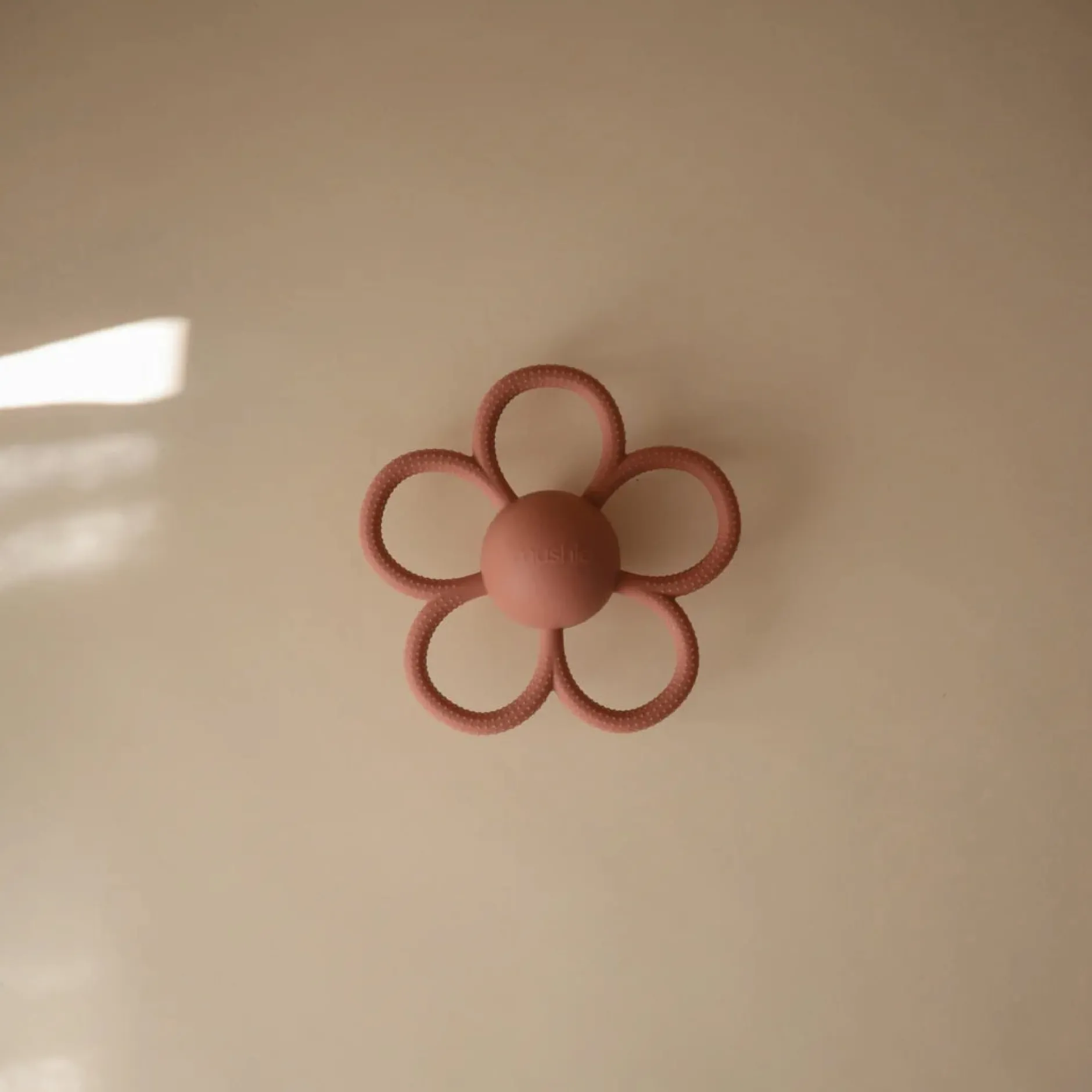 Inspiré par la nature et conçu dans un souci de fonctionnalité et de confort, notre anneau de dentition en silicone Daisy Rattle présente une forme de fleur ludique et un hochet intégré.