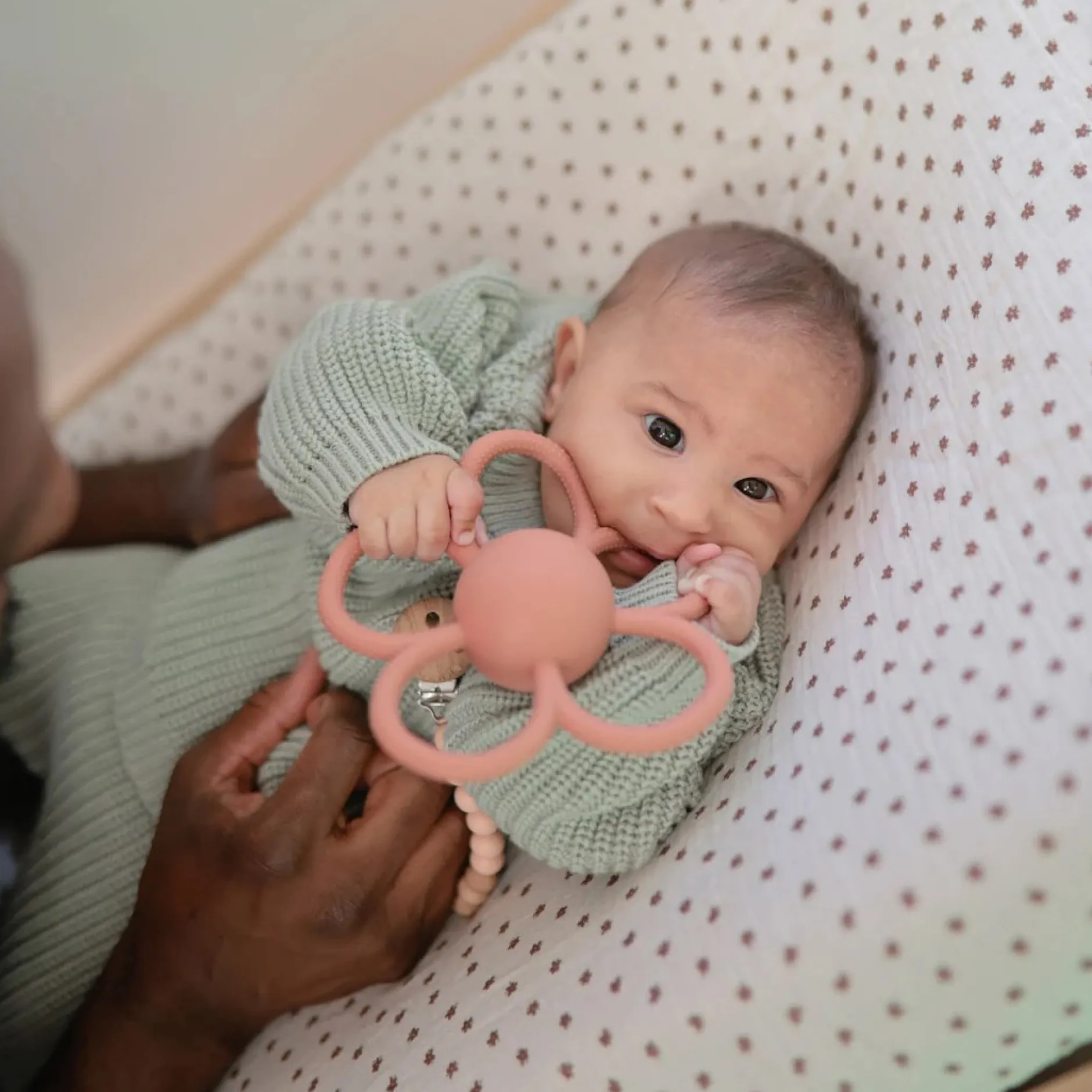 Le son joyeux engage les sens auditifs de bébé pour un soulagement supplémentaire et apaisant. Avec des poignées faciles à saisir pour les petites mains et une surface en silicone texturée qui masse les gencives, nos hochets de dentition sont parfaits pour le parcours de dentition de votre tout-petit.