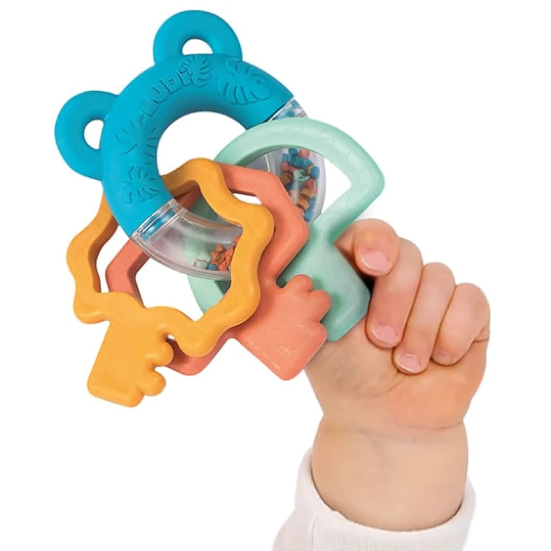 Les 3 clés texturées facilitent la prise en main du hochet.