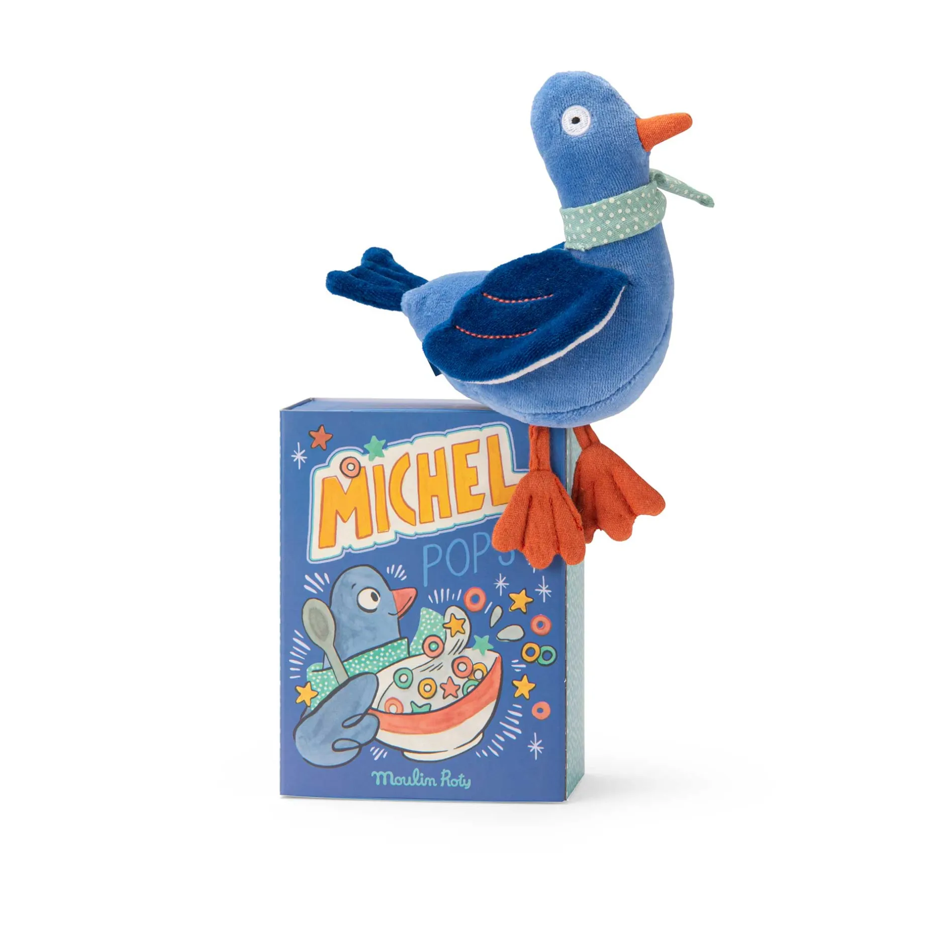 Hochet Michel le pigeon pour jouer et faire tinter le petit grelot qui se chache à l’intérieur. Son corps en velour tout doux est parfait pour tendre insntant câlins.