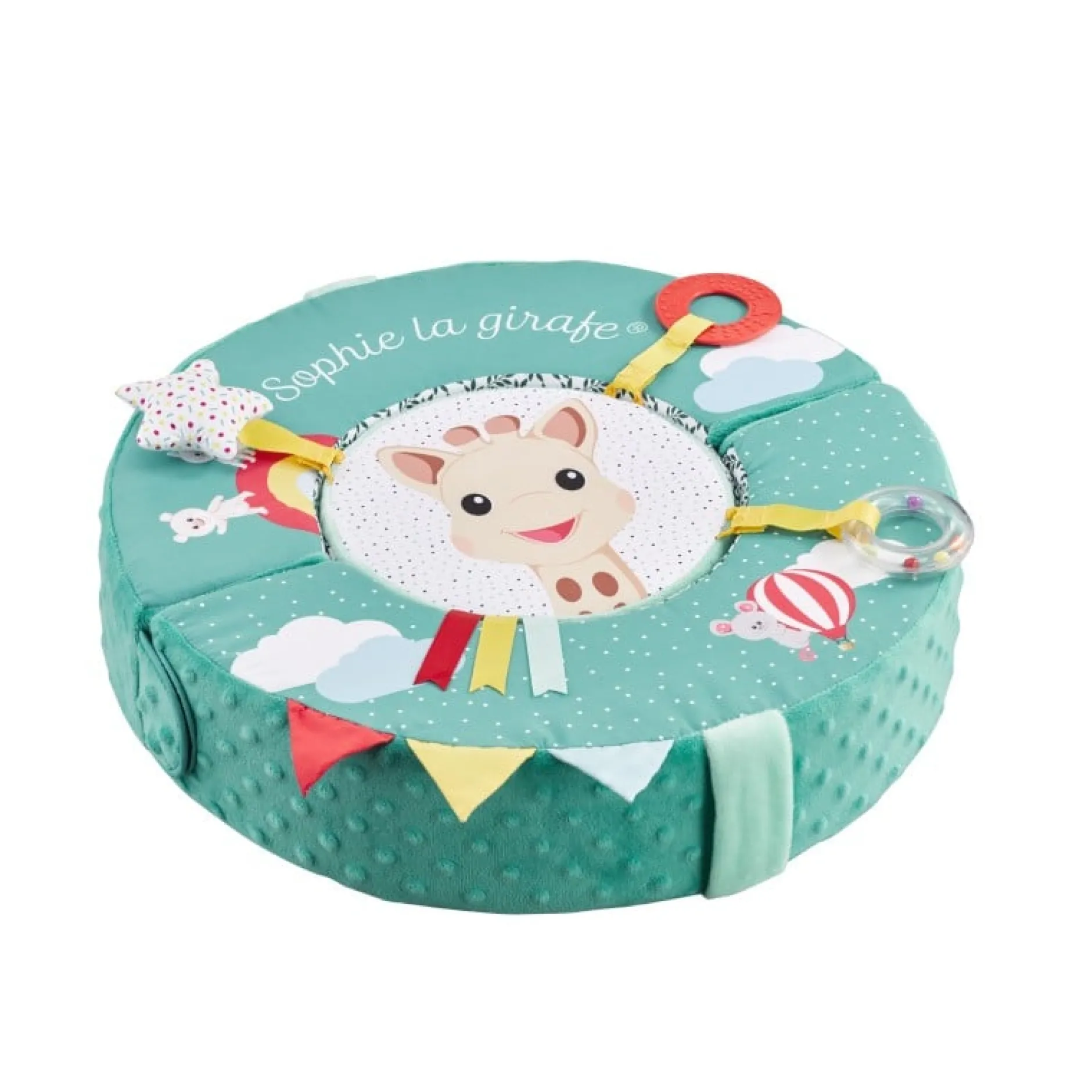 Une roue 100% modulable à séparer en 3 parties indépendantes, grâce à ses attaches Velcro®, pour proposer différentes activités à bébé : Dès les premiers mois, bébé s’éveille et développe ses sens avec la roue centrale du module et ses nombreuses activités : papier froissé, grelot, miroir,… Puis lorsqu’il grandit, bébé peut s’amuser à détacher chaque partie de la roue pour former un serpentin et apprendre l’assemblage. Enfin lorsque bébé est plus à l’aise, il s’amuse à faire rouler la roue et la suivre à 4 pattes et l’encourage même à faire ses premiers pas.