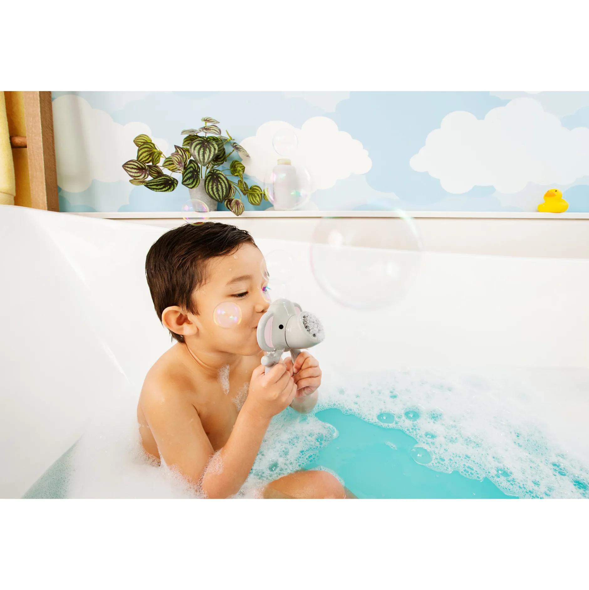 Les éléphants et les bulles ont un attrait universel, et il n’y a rien de plus mignon qu’un éléphant qui souffle des bulles à travers sa trompe. Rencontrez cet animal à bulles, le nouveau meilleur ami de votre petit à l’heure du bain ! Cet adorable jouet en forme d’éléphant est approuvé pour être utilisé par les tout-petits. Il suffit de mouiller la partie en tissu, d’ajouter du savon ou du shampoing, et de souffler à travers l’embout à sens unique pour créer un nuage magique de bulles.