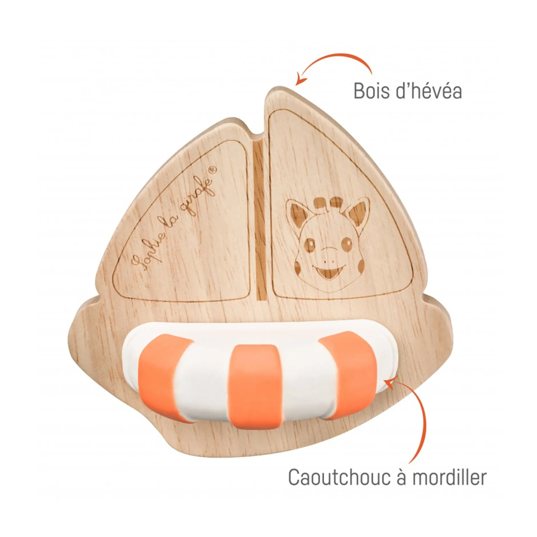 Le bateau flotte sur l’eau et avec sa bouée à mordiller, amovible et texturée en caoutchouc 100% naturel, c’est l’amusement garanti dans le bain de bébé !