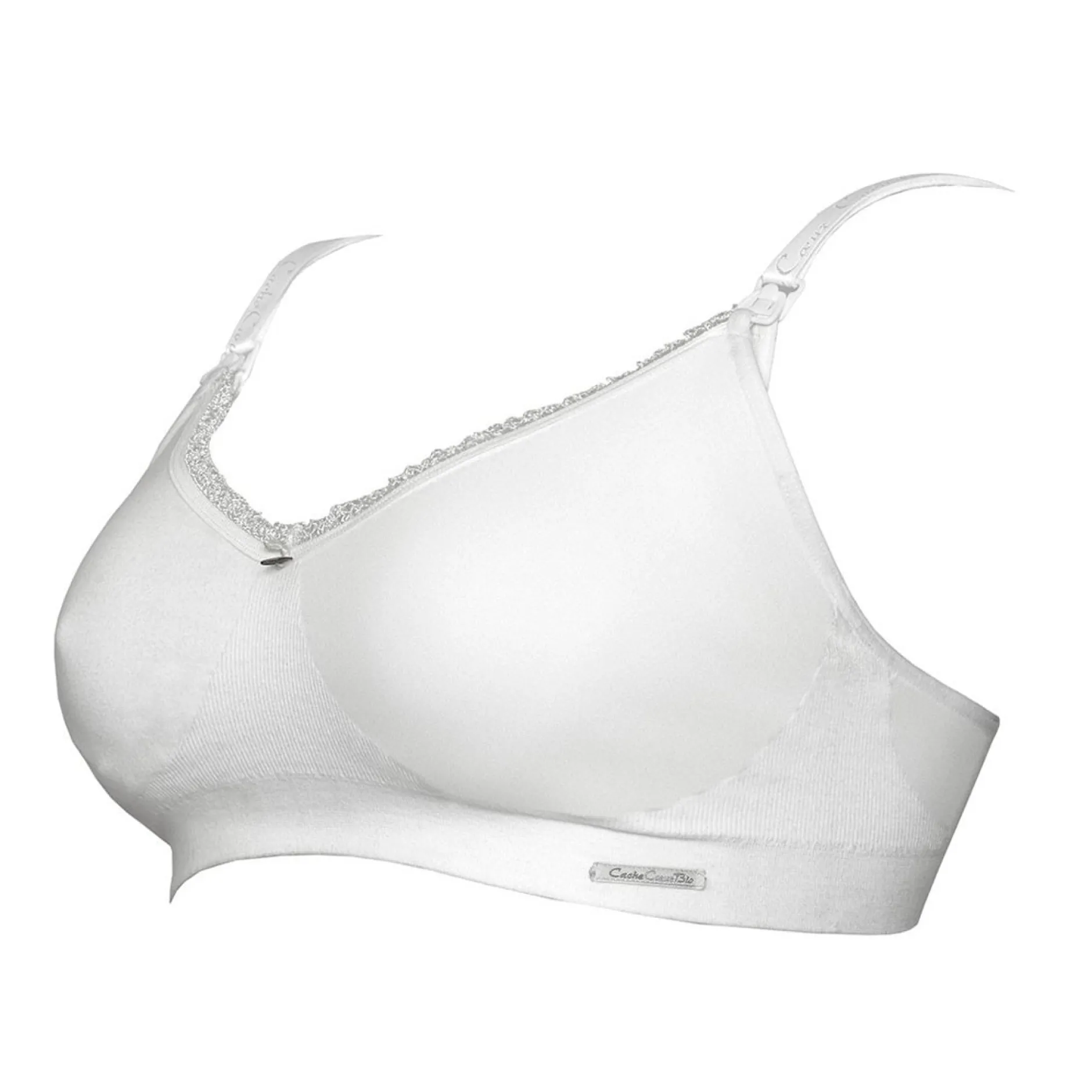Sa fine dentelle, ses bretelles Jacquard siglé « Cache Cœur » et son petit cœur en nacre naturelle ajoutent une touche subtile de féminité à cette brassière d’allaitement et de grossesse. Une ouverture discrète permet de glisser vos coussinets d’allaitement tout en conservant un confort coton. Des zones de renfort apportent un maintien parfait de la poitrine même de nuit.
