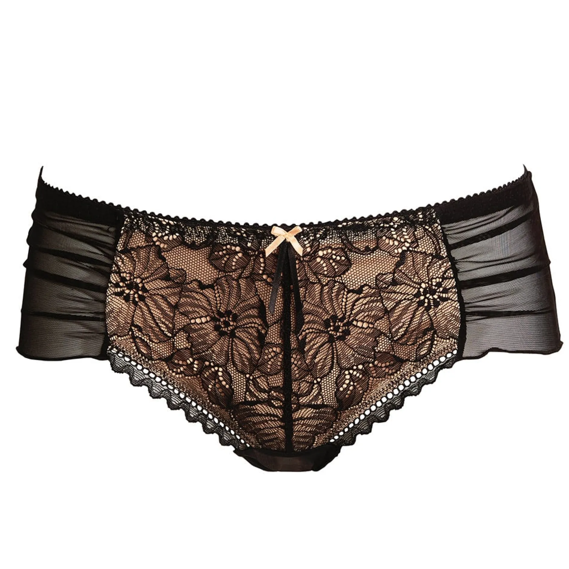 - Fil contrasté irisé et petit nœud satiné. Dentelle fleurie doublée de microfibres ultra-douces.