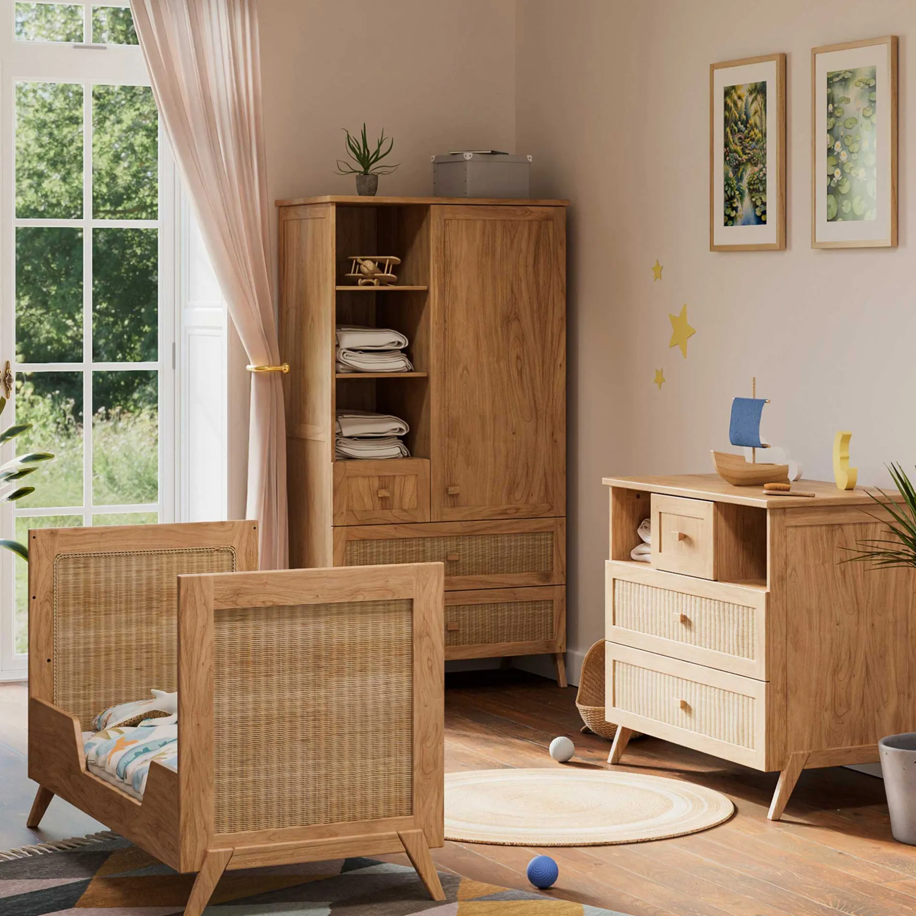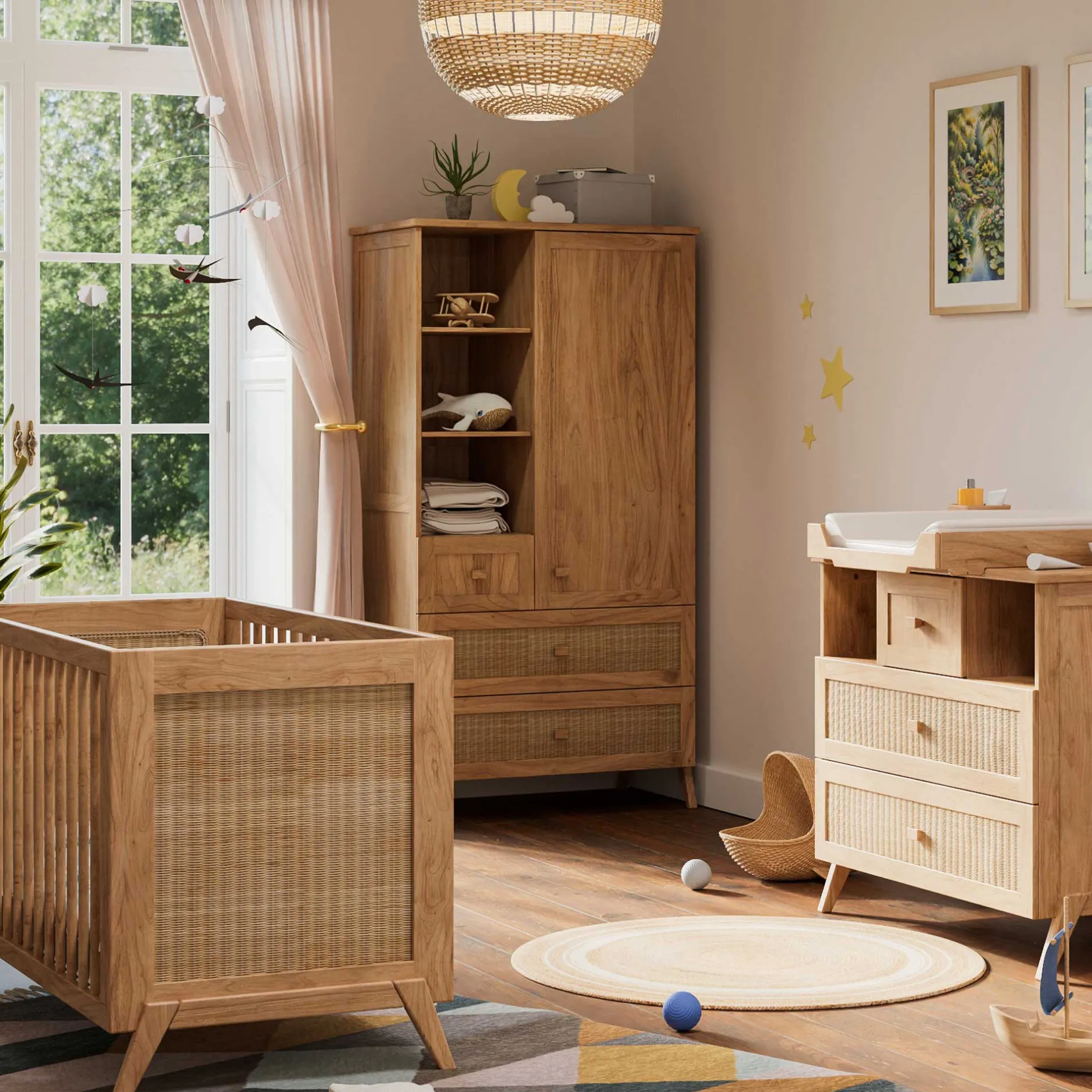 Il possède de beaux panneaux en tressage de rotin, lui aussi 100% naturel.