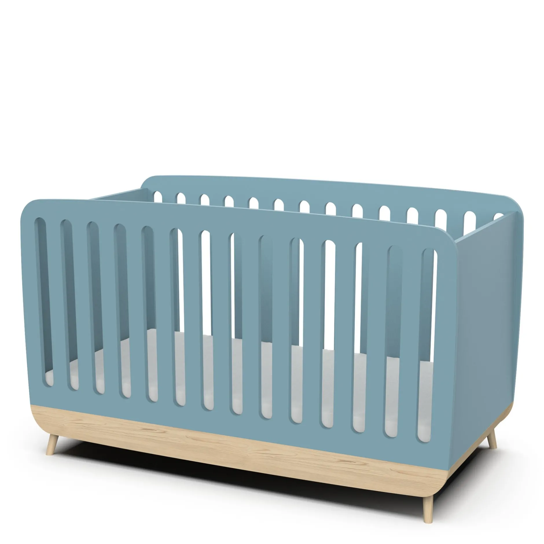 Lits 70X140 Évolutifs*CBA Meubles Firmiana Lit Bébé 70 x 140 cm de Bleu Orage / Bois Naturel