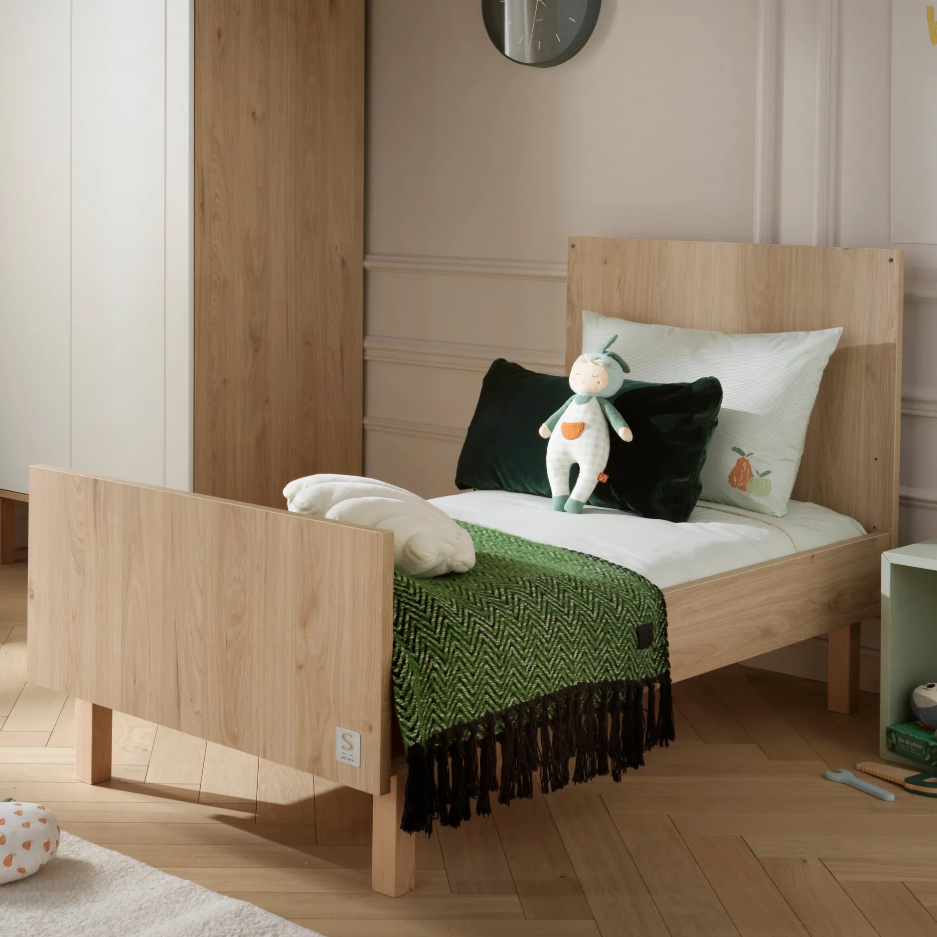 Ce lit Little Big Bed 70×140 de la collection Solène va accompagner votre enfant de sa naissance à ses 7 ans environ. Si vous allez aimer ses détails avant-gardiste et chic vous allez adorer son côté évolutif ! De la naissance à ses 3 ans environ, votre bébé profitera de son lit à barreaux 70×140 cm. Pratique, son sommier est réglable sur 3 hauteurs. Puis, au moment choisi, vous pourrez utiliser les éléments de transformation pour lui offrir un lit de grand. Dormez tranquille, ce lit répond à toutes les normes de sécurité.