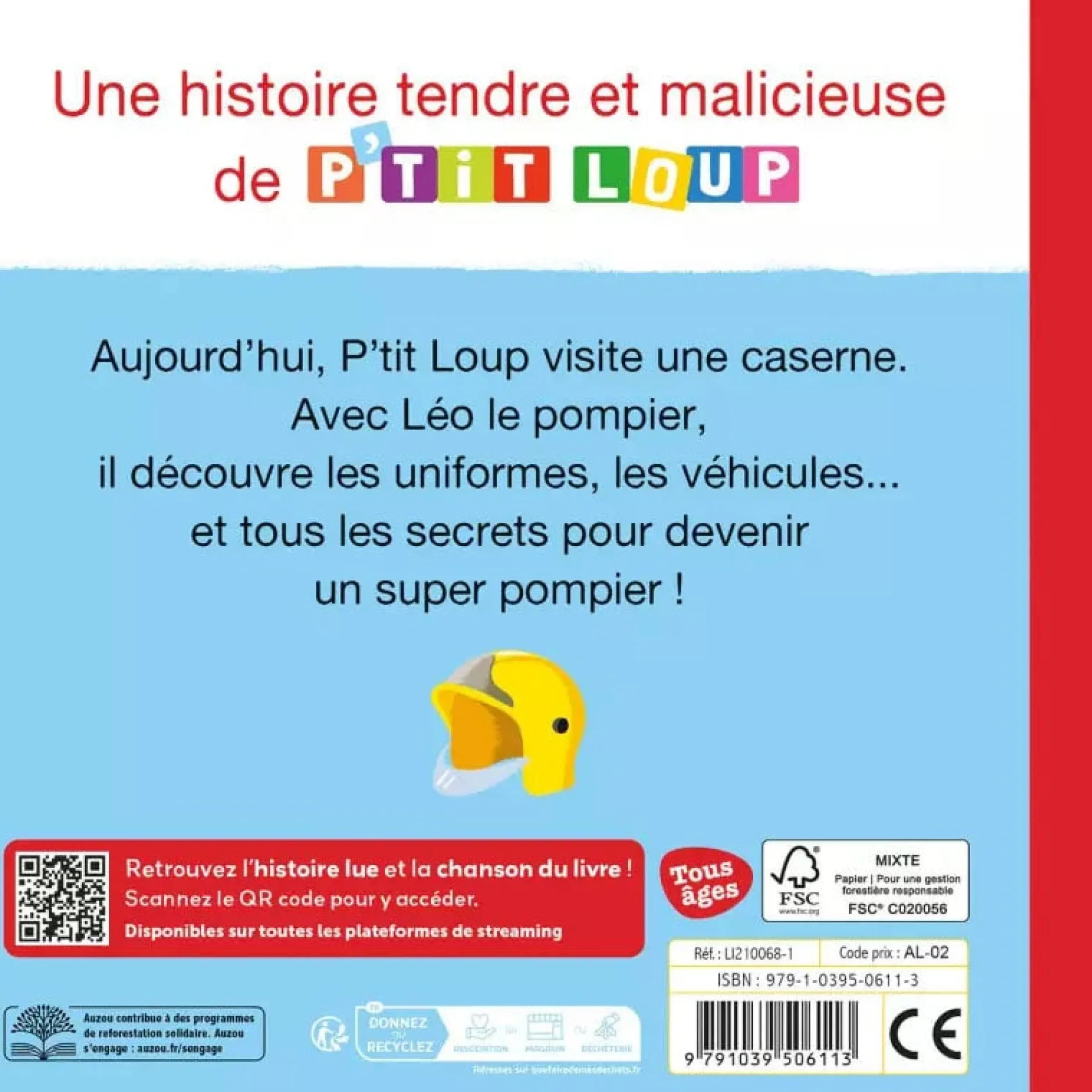 Il est accompagné par un pompier qui lui montre les camions, les uniformes, etc. P’tit Loup est fasciné !