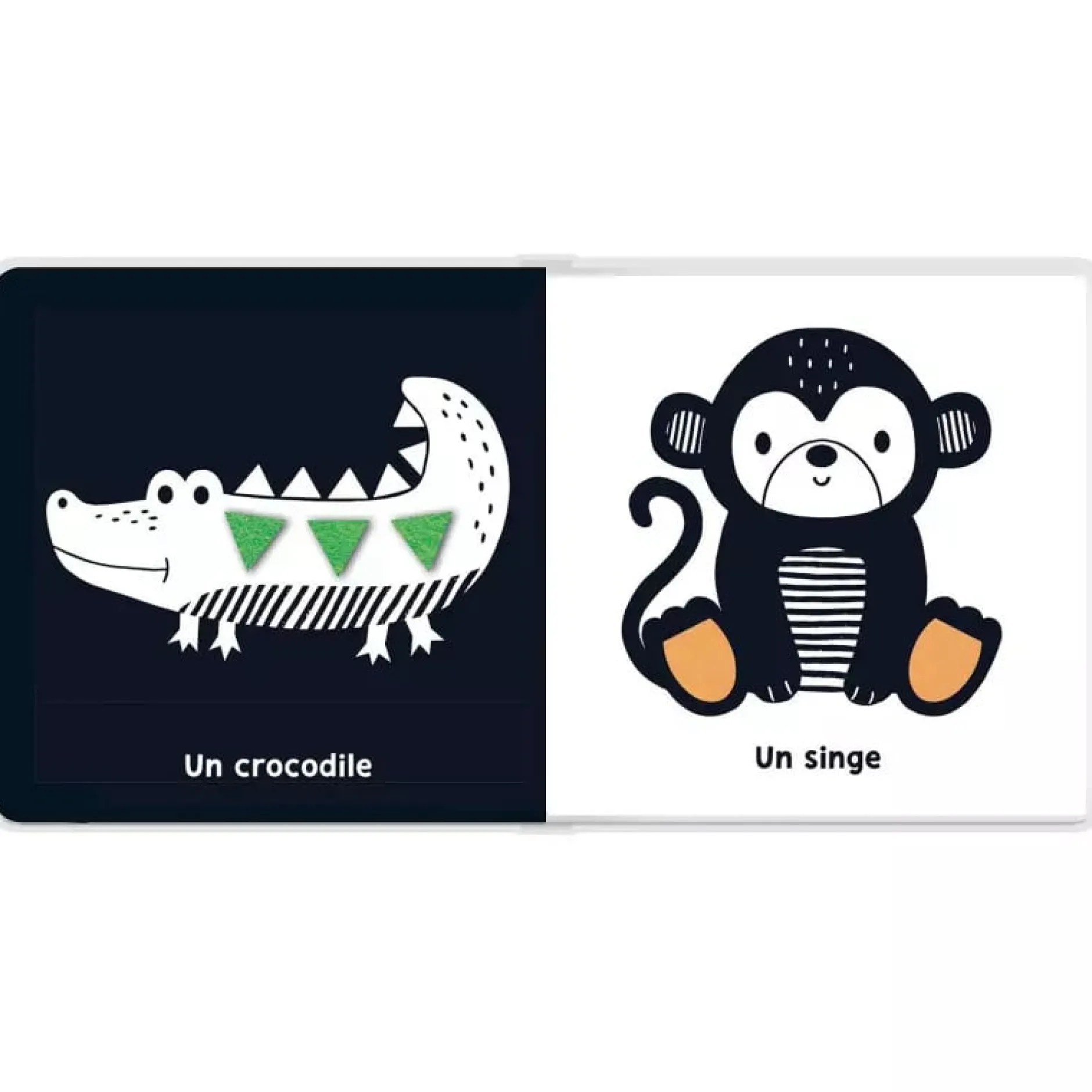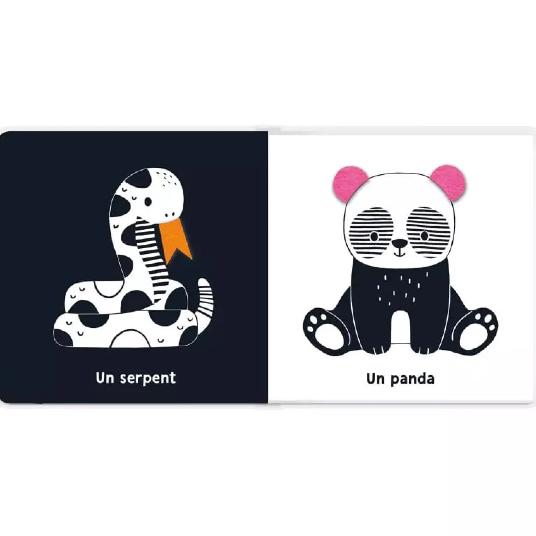 Des illustrations en noir et blanc pour attirer l’attention de bébé à partir de 2 mois.