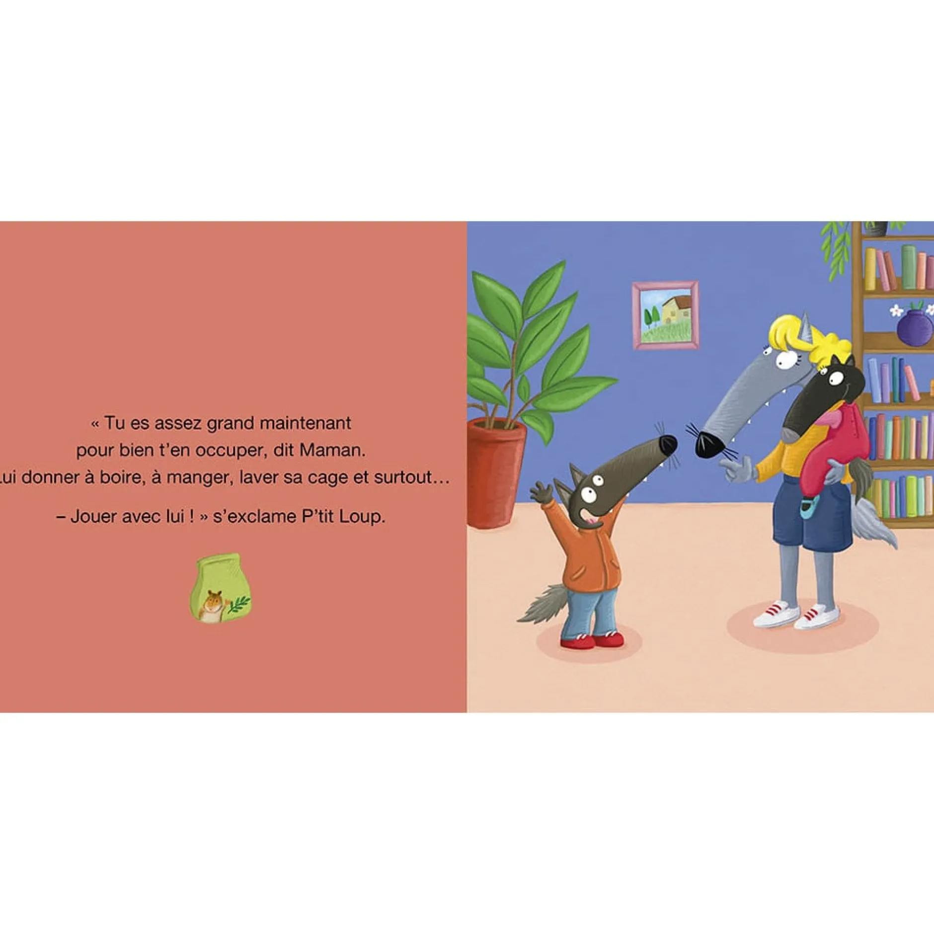 Aujourd’hui, P’tit Loup adopte son premier animal de compagnie, un petit hamster tout mimi ! P’tit Loup apprend pas à pas à prendre soin de son nouveau compagnon : le nourrir, nettoyer sa cage et surtout jouer avec lui !