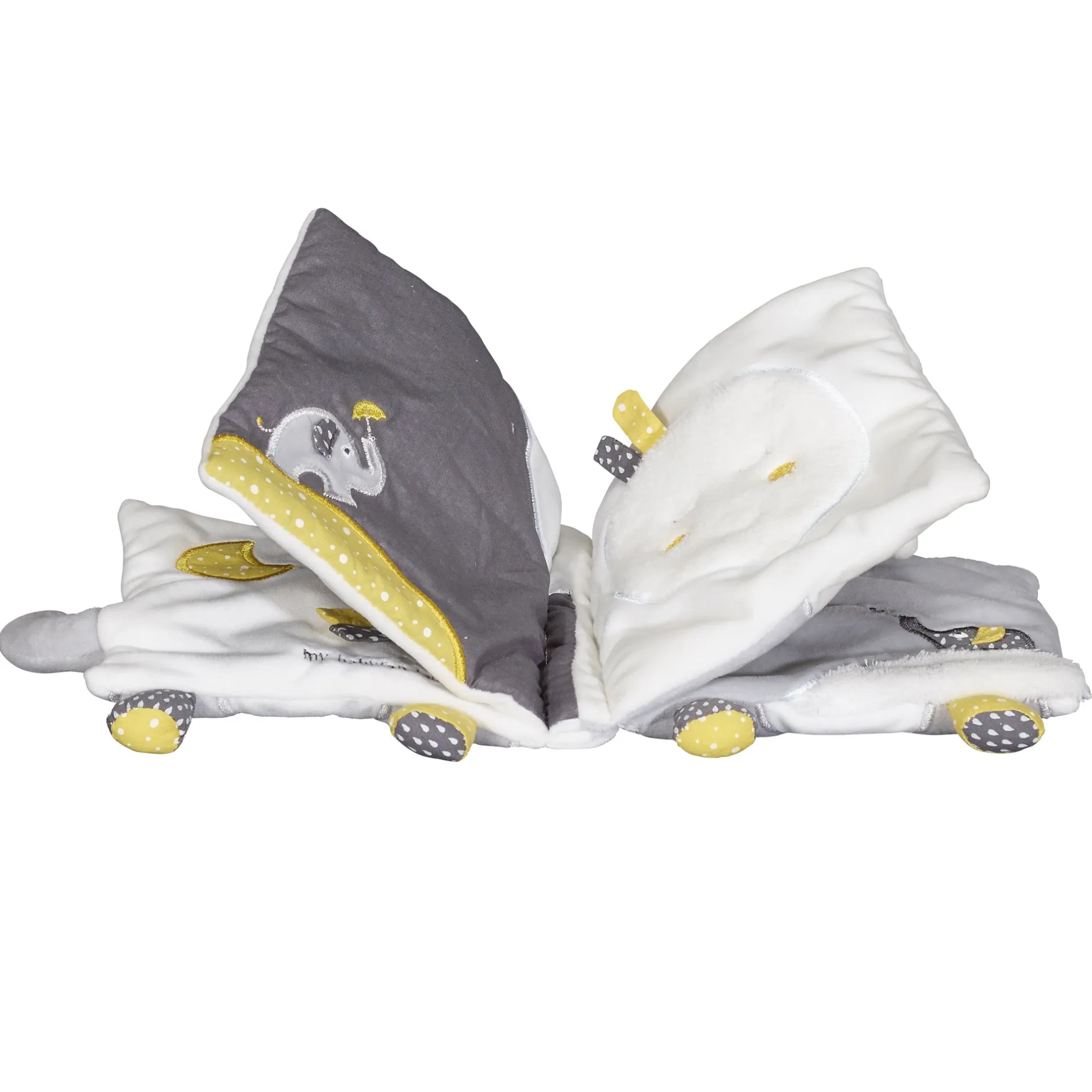 En tissu et composé de multiples activités sensorielles et auditives, le livre d’éveil amusera bébé lors de ses moments d’éveil.