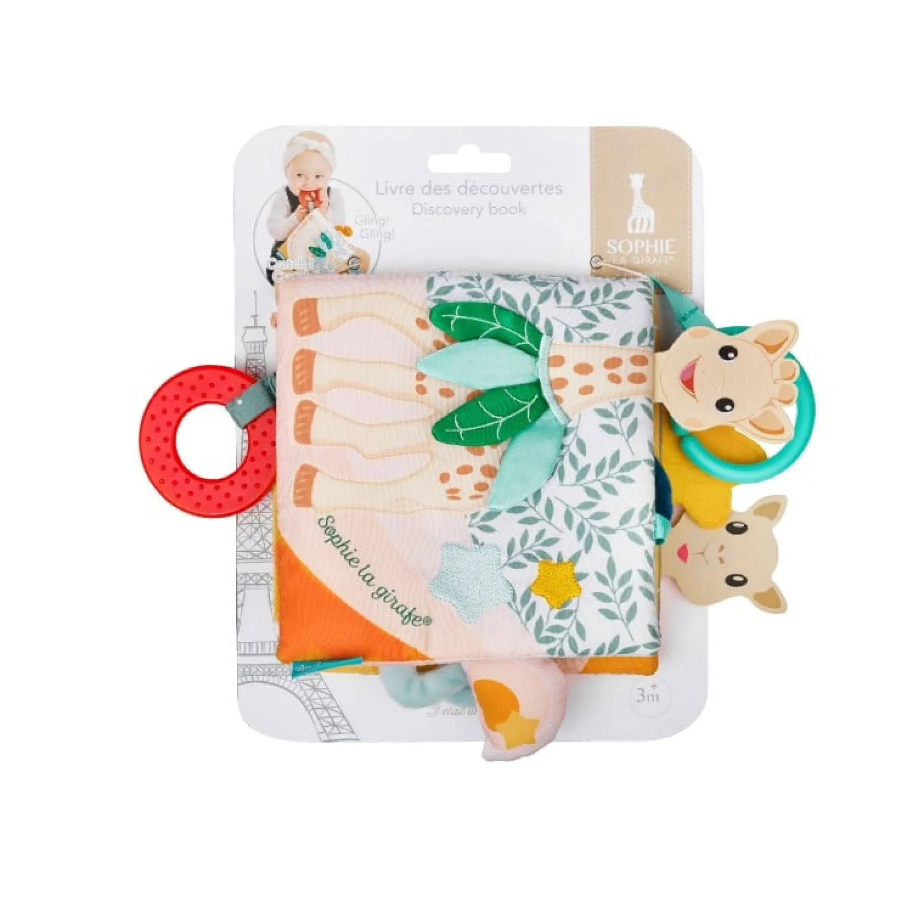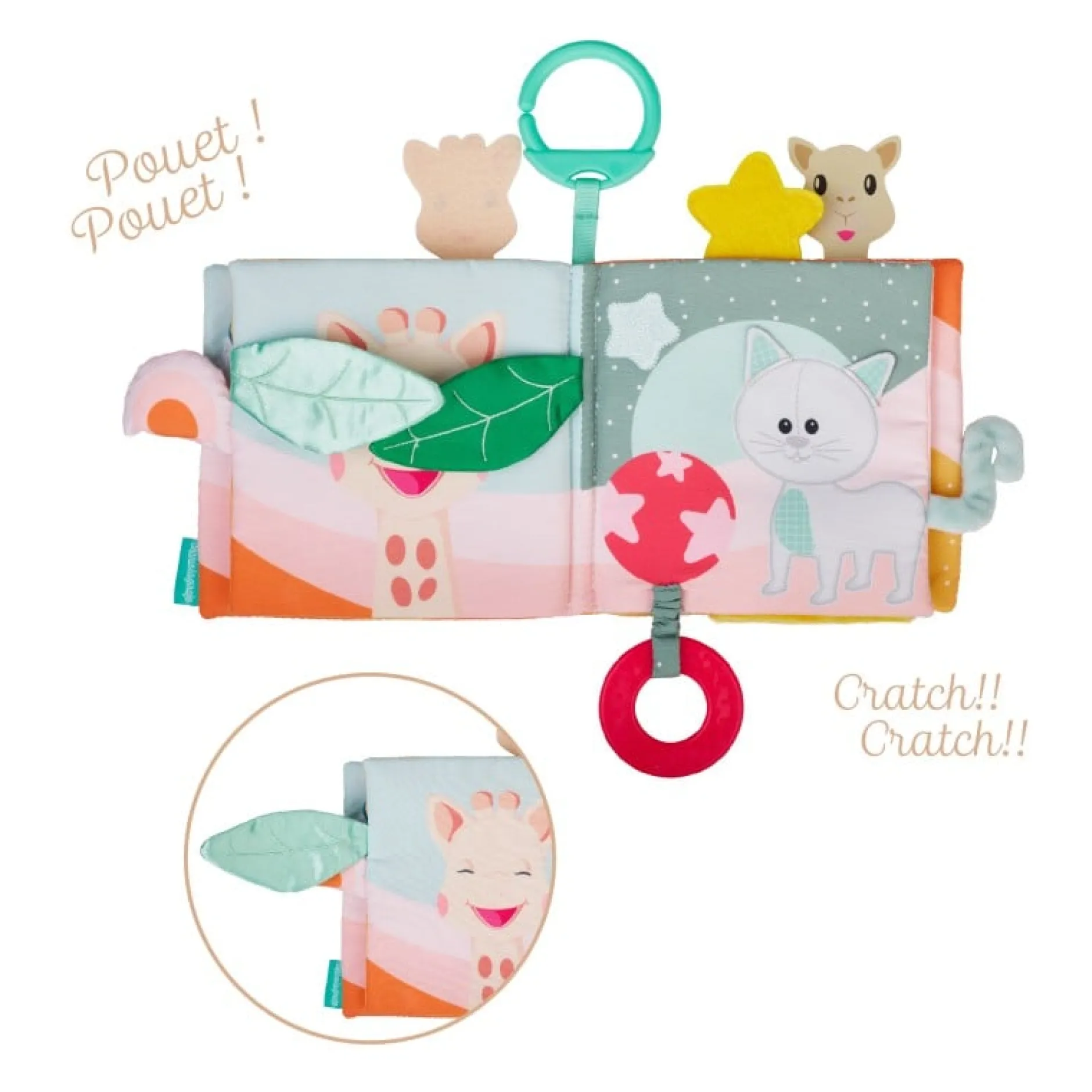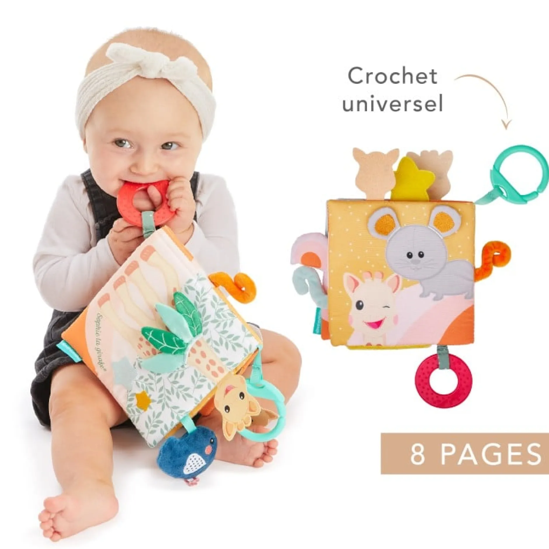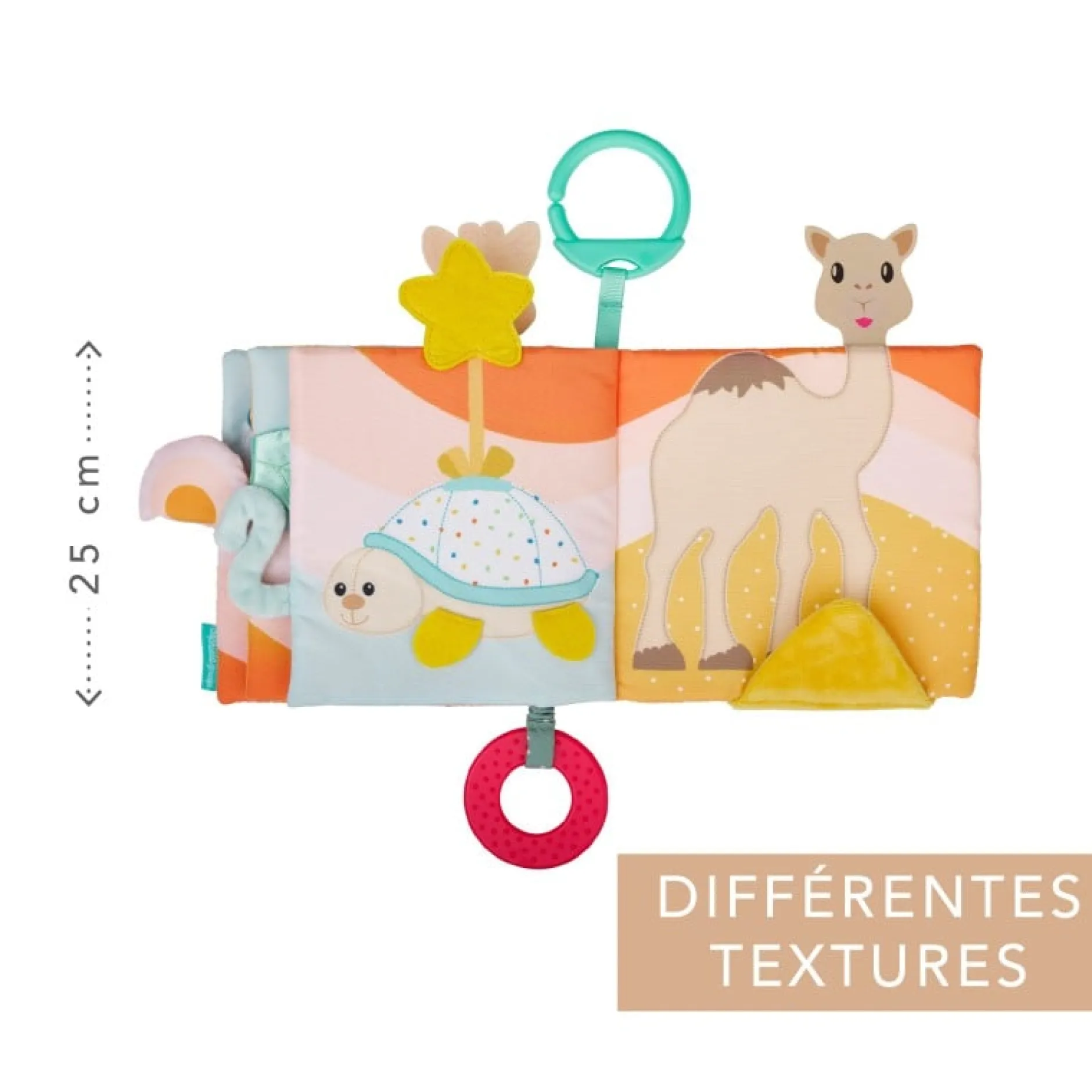 8 pages d’activités pour éveiller la curiosité et les sens de bébé ! Les parties qui dépassent du livre incitent bébé à tourner les pages et à découvrir différentes surprises: Kiwi l’oiseau qui se cache derrière un nuage, Sophie la girafe qui joue à cache-cache avec les feuilles, la pyramide de sable crépitant…