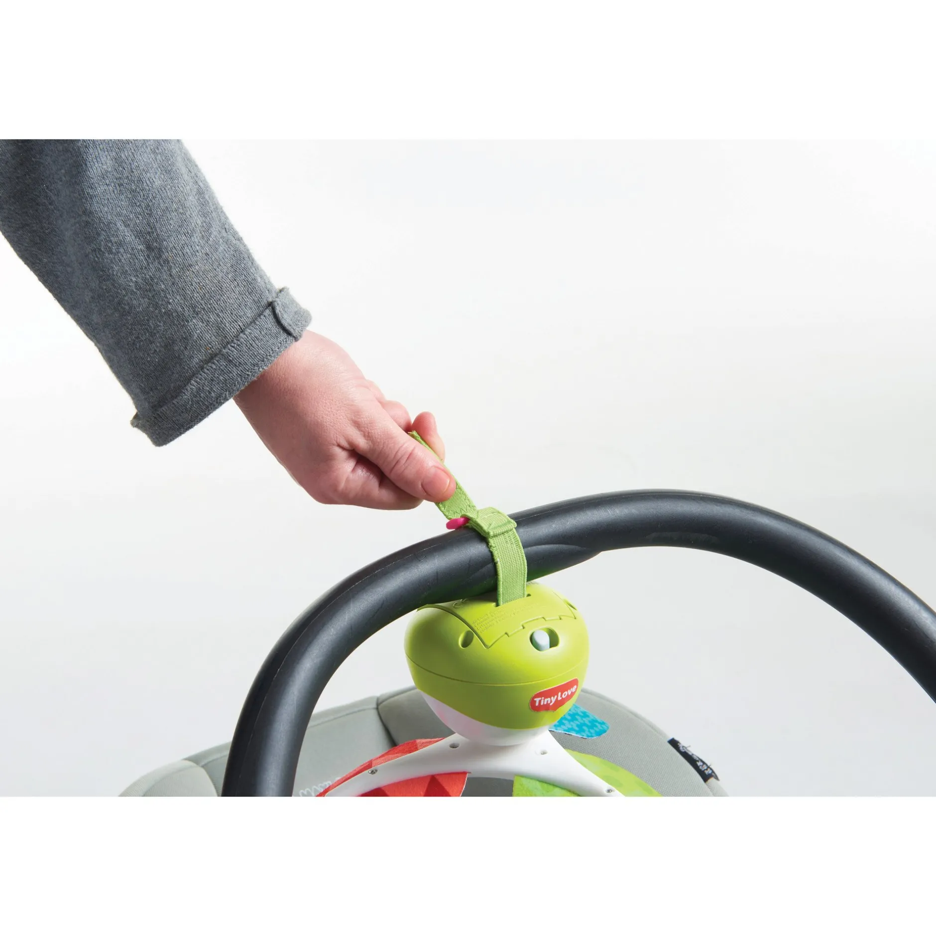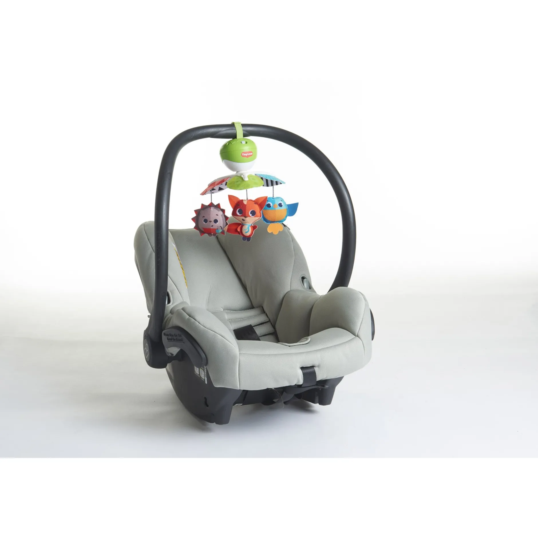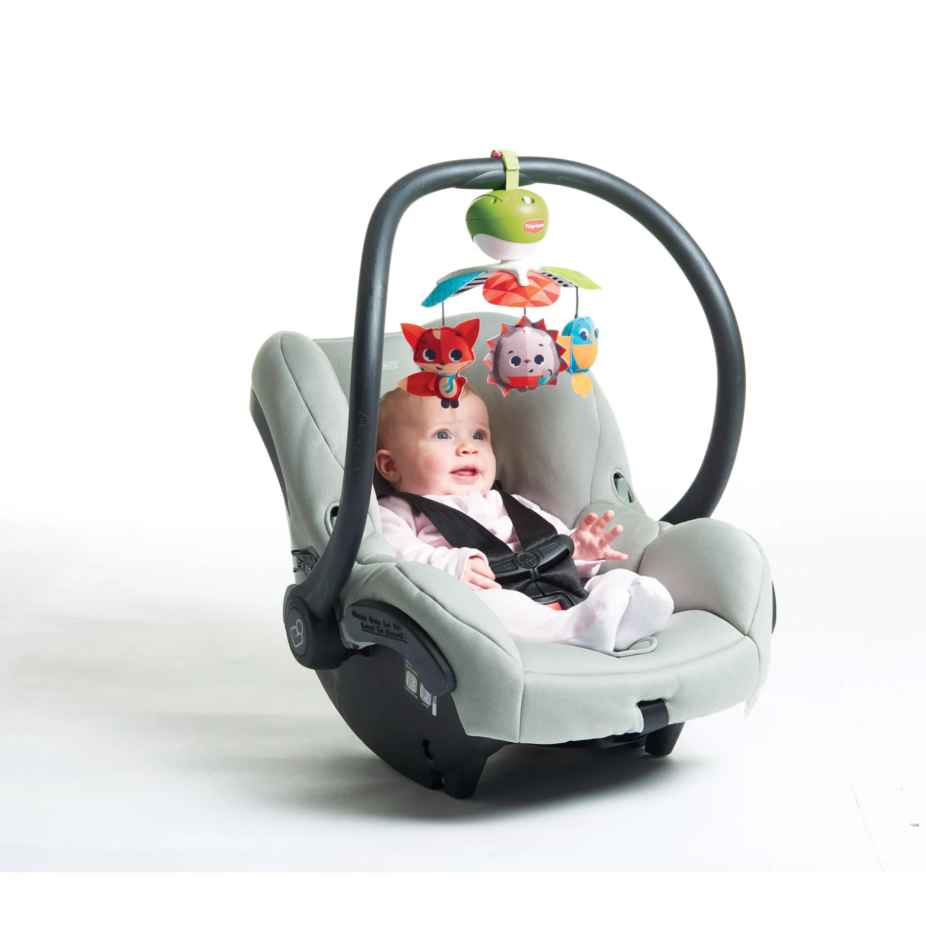 - Fixez le mobile Take-Along à la poussette, au parc, au lit pliant ou au siège auto pour ne jamais s’ennuyer.