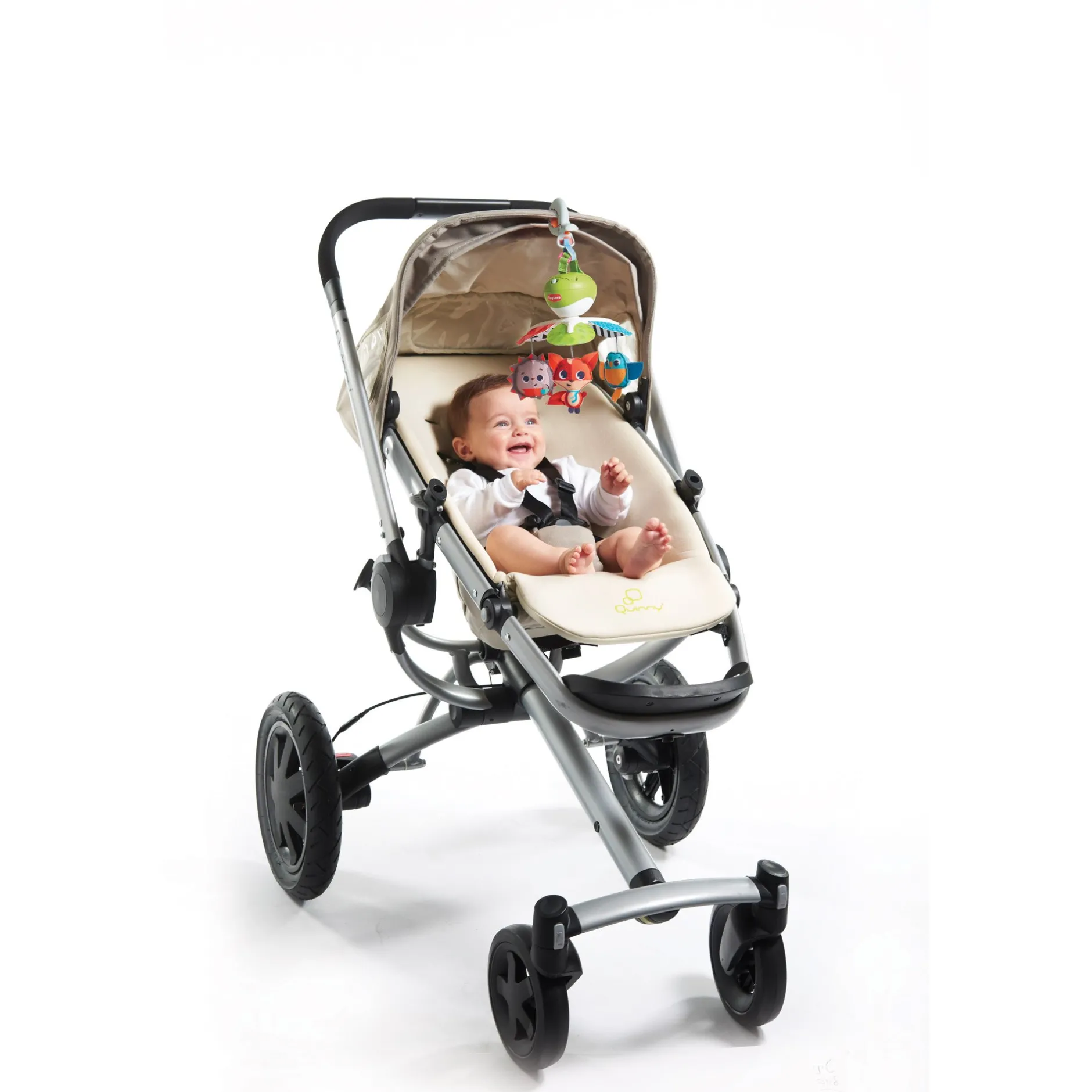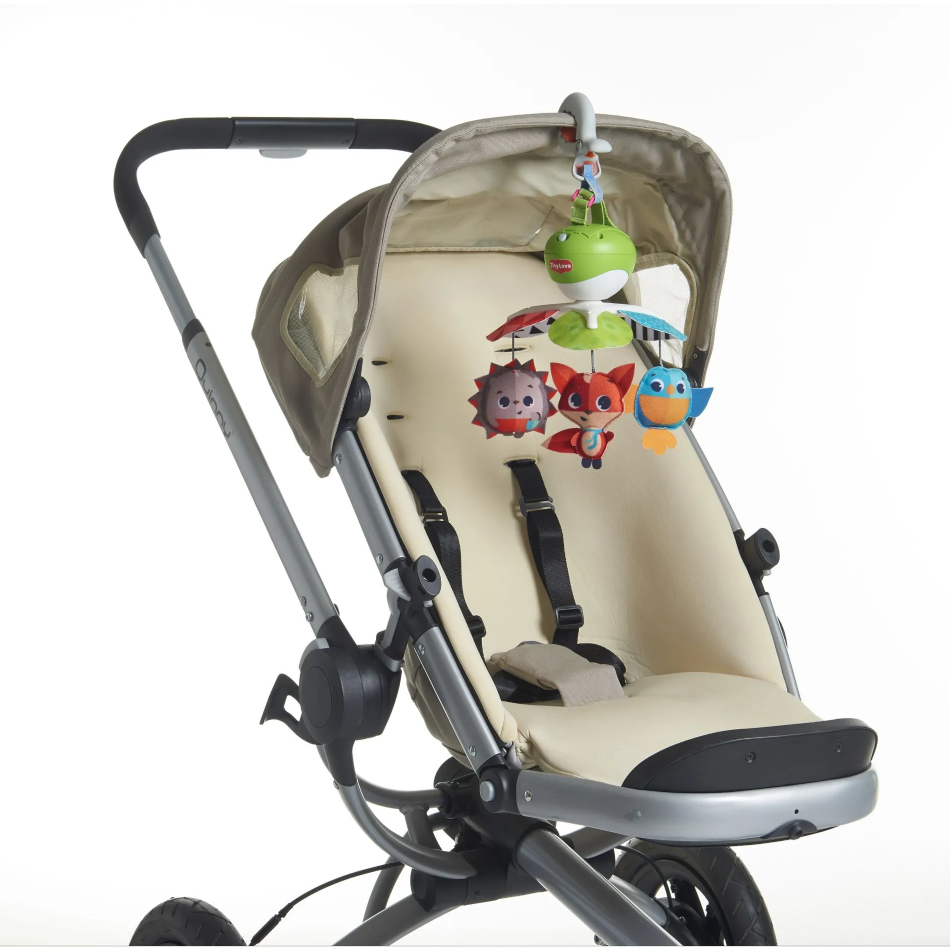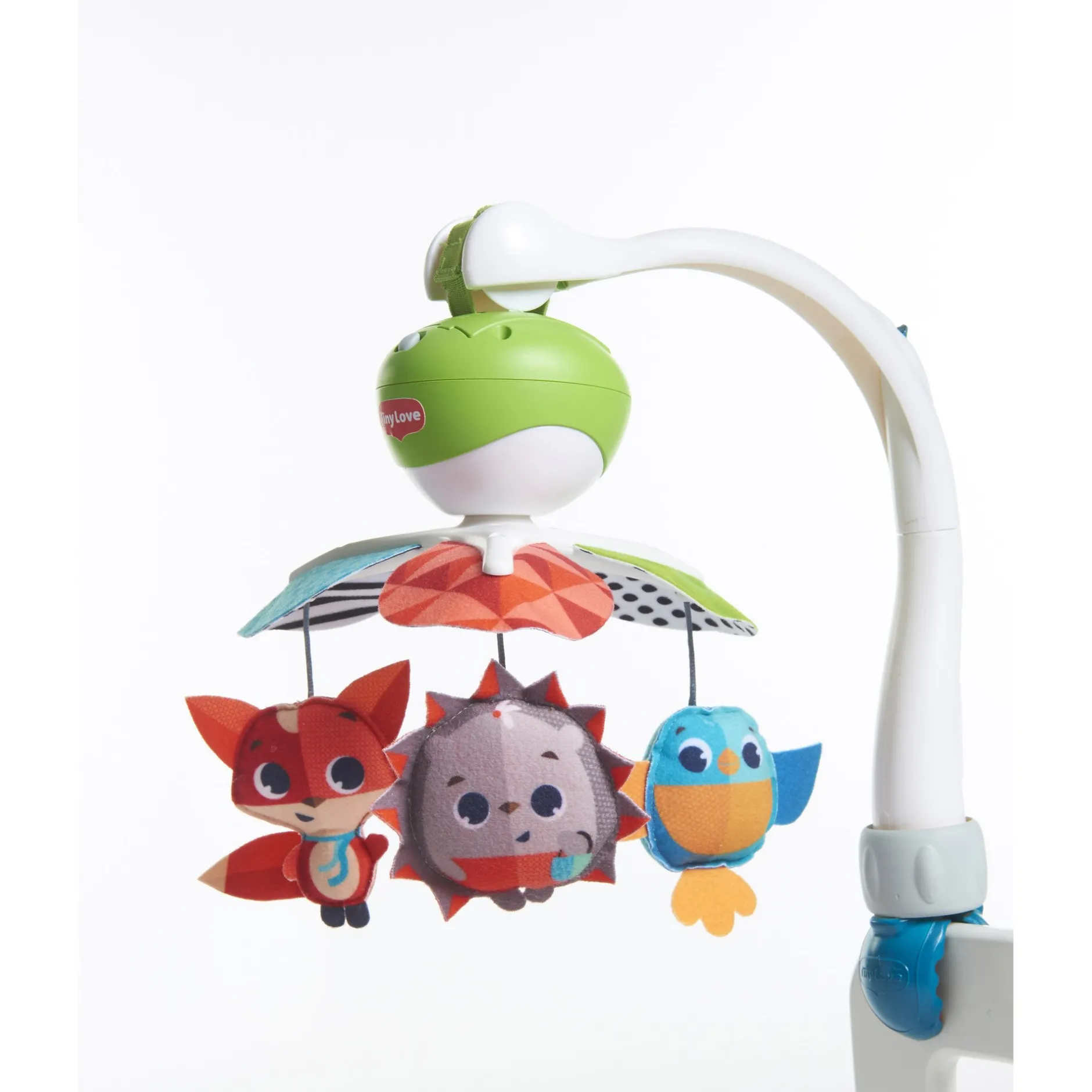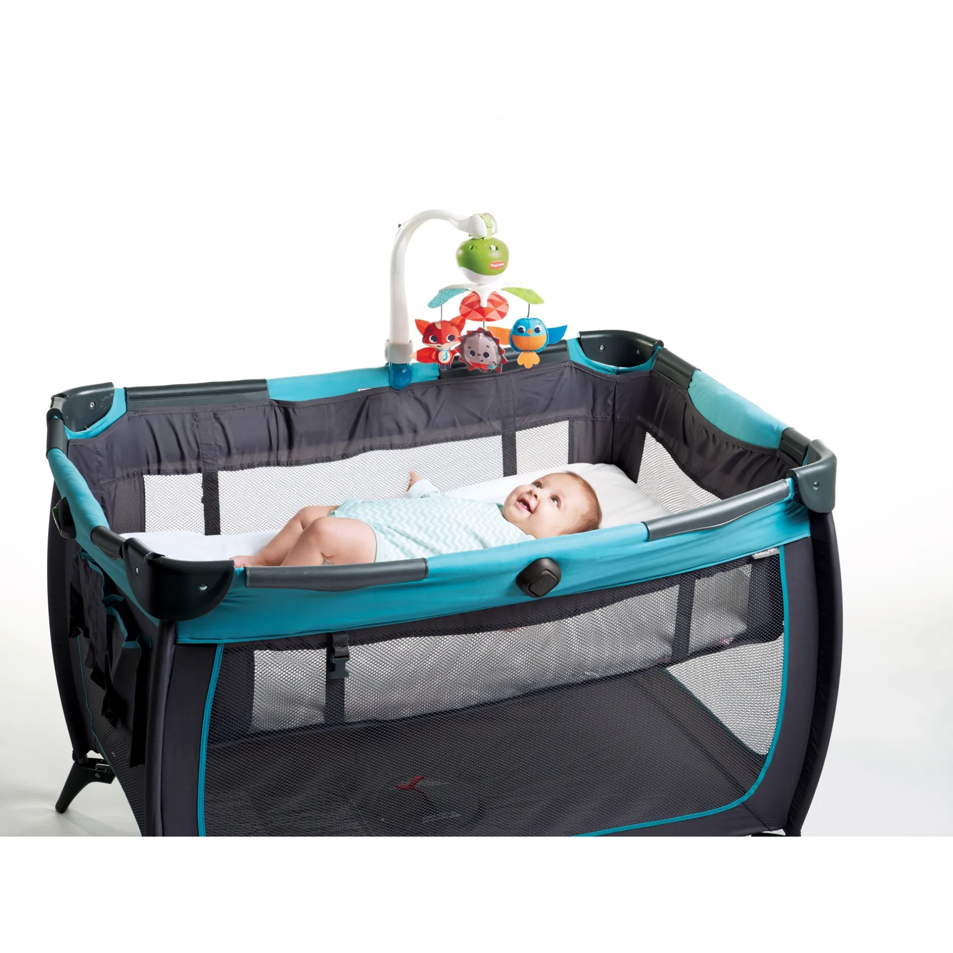 - Fixez le mobile Take-Along à la poussette, au parc, au lit pliant ou au siège auto pour ne jamais s’ennuyer.