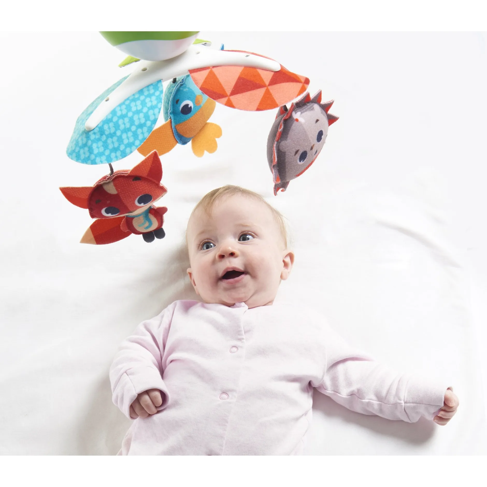 - Le saviez-vous ? La nature répétitive des mouvements et les sons du mobile peuvent contribuer à calmer les bébés qui en général ont besoin d’une stimulation importante.