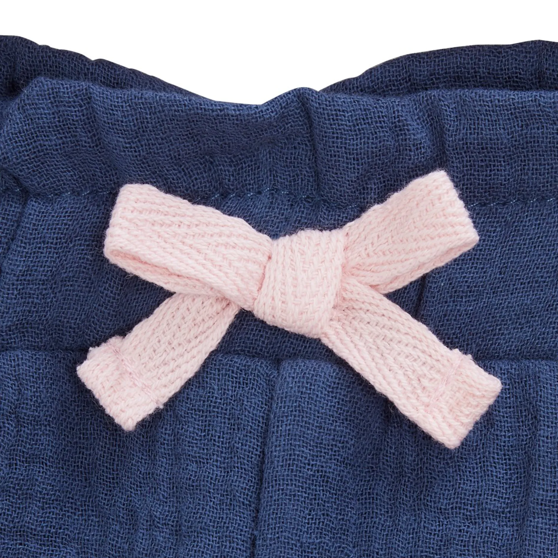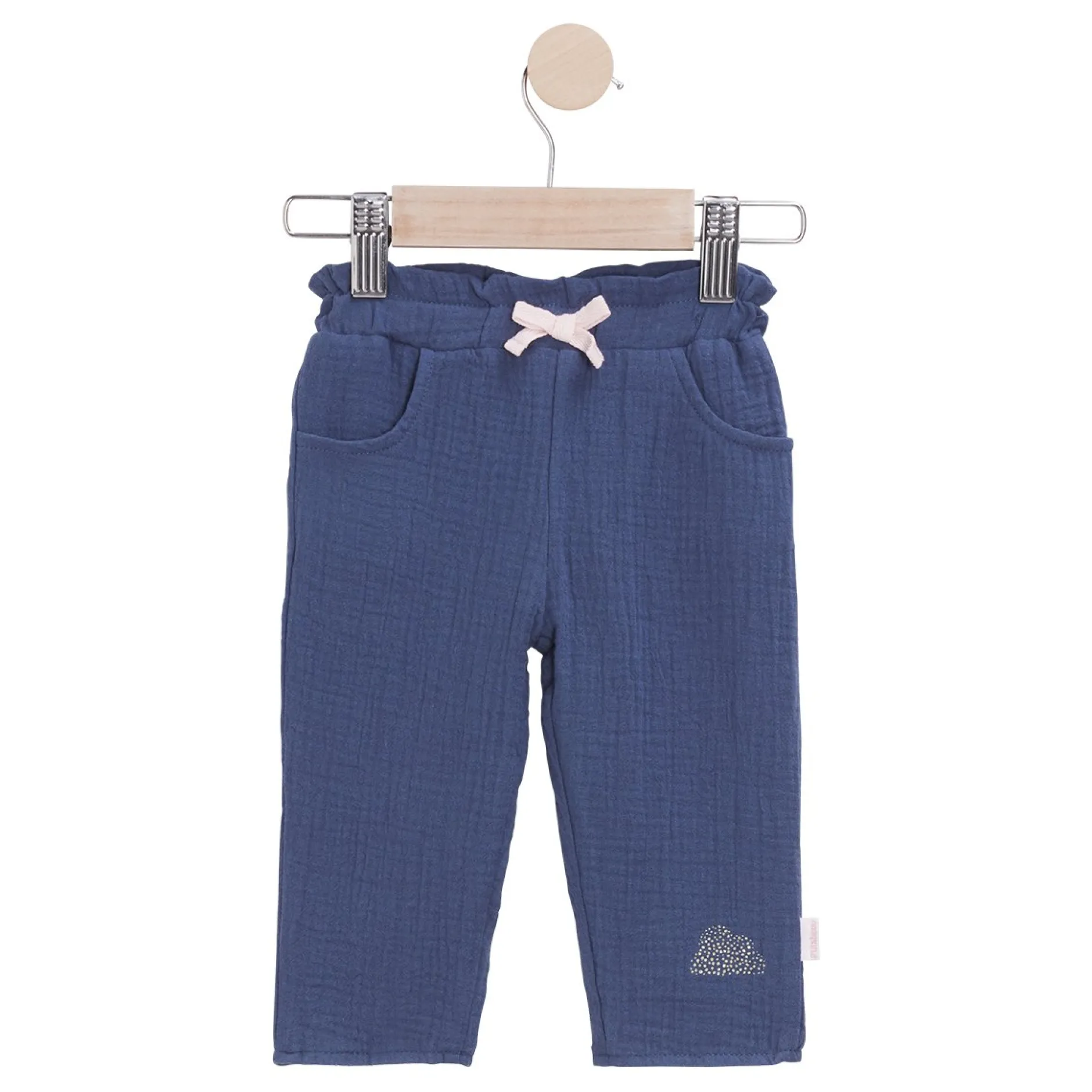 Pantalon P’tit Bisou en mousseline de gaze marine.
