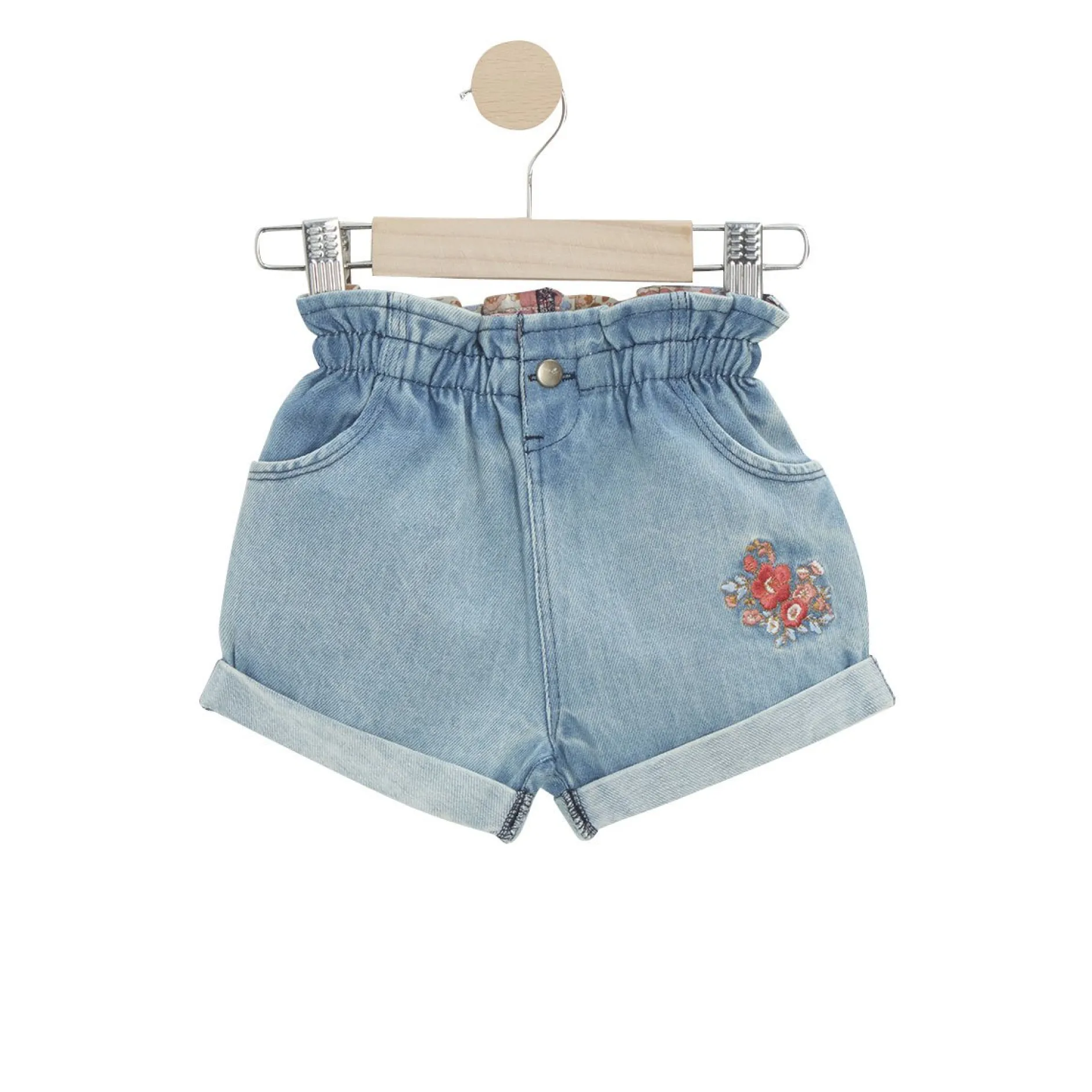 Adoptez ce short en jean pour bébé ! Le bas des jambes est retroussé pour un effet moderne. On adore aussi sa coupe bouffante et sa taille élastique qui lui confèrent un style moderne. Ce short pour bébé est brodé de fleurs pour la petite touche décorative.