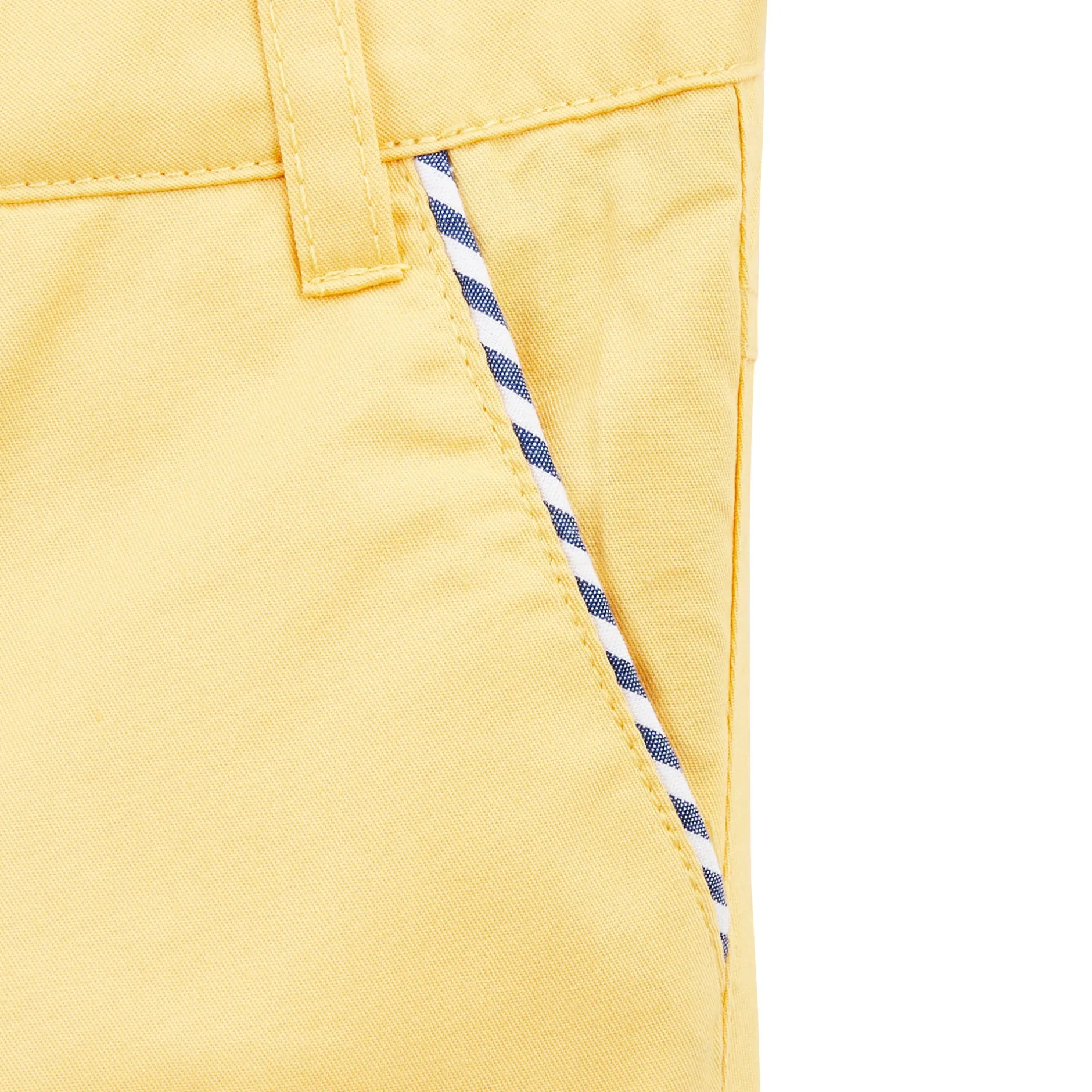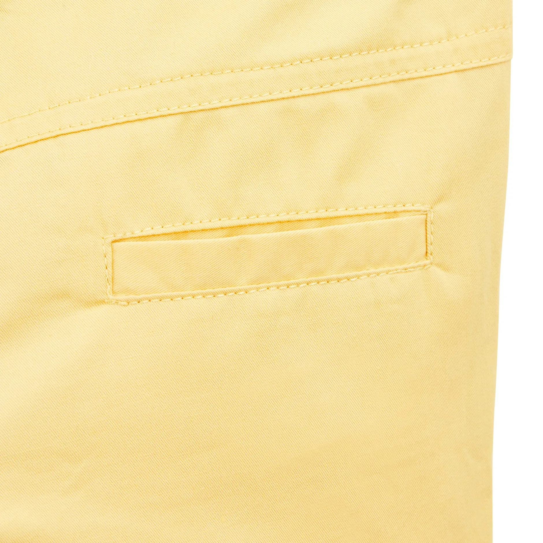 Pantalon Marèse en satin de coton dans les tons de jaune bouton d’or. Jolie finition intérieure avec l’application de l’imprimé raquette qui ancre le thème dans l’univers « Sport chic ». Look à la fois décontracté et chic avec ses poches devant à l’italienne gansée de tissu à rayures blanc/bleu et ses poches passepoilées au dos.