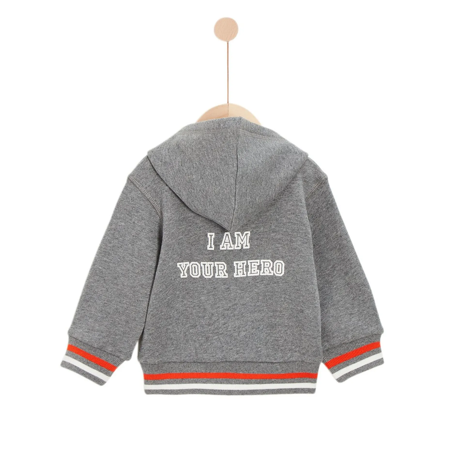 Ensemble détente Marèse en molleton chiné gris. Composé d’une veste à capuche zippée devant et d’un pantalon. La veste a une poche devant et un écusson « éclair foudre » sur la poitrine. Elle a un bord côte rayé blanc/ rouge en bas de manches et bas de corps. Très belle animation dans le dos « I am your hero » en impression et encre gonflante pour un aspect ludique. Le pantalon est tout confort avec bords côtes rayés blanc/rouge à la taille et bords côtes unis gris en bas de jambes. Cet ensemble très fonctionnel et mode ravira les petits garçons sportifs et baroudeurs. Les mamans auront le plaisir d’avoir 1 seul prix pour 2 produits qui peuvent se porter seuls si besoin. Lavage à 30°C.